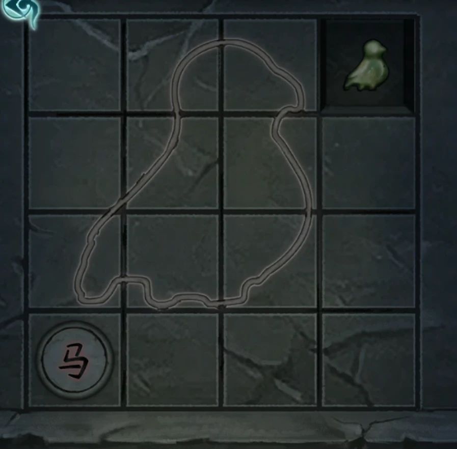 查看一下左边的机关玩个小游戏,这不是象棋玩法哦,就是单纯的消消乐~这个也比较简单,先用右边的马吃掉车,然后继续用这个马吃掉上面的士,还是用这个马吃掉王,用上面的马吃掉这个马,最后用唯一一个马吃掉士,完成后右上角打开一个小暗格,放入小玉鸟。