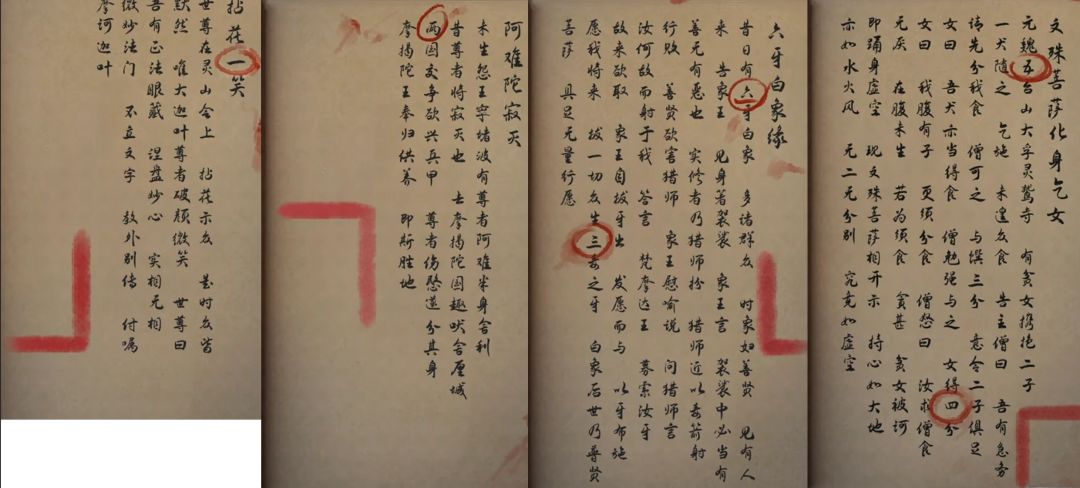 左边桌子上还有一本书,重点就是红色圈起来的数字和对应形状了,数字是连续的优先考虑是顺序,所以顺序就是┘┐└┌┌└,结合第二层的佛像胸前图案,所以这个就是那个的线索了,一会我们下去再详细说,先继续探索这一层。