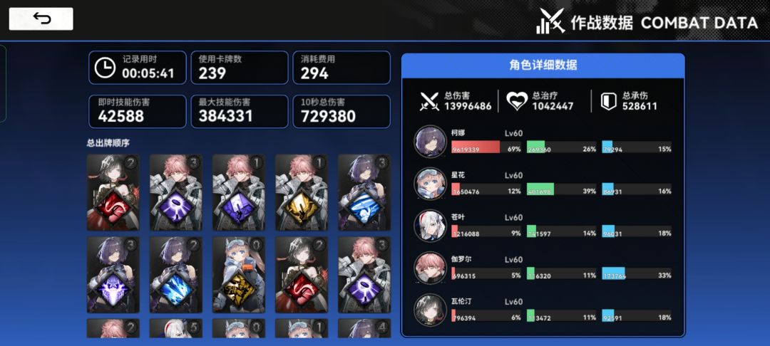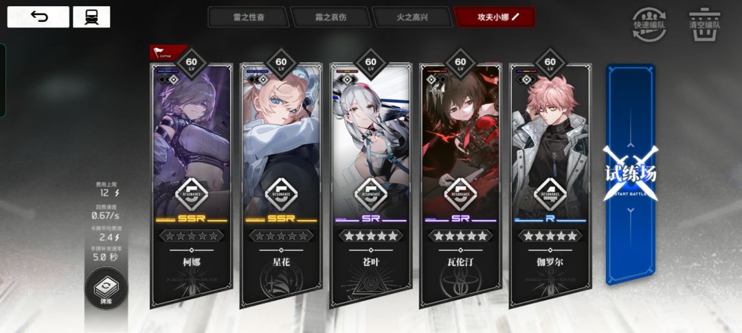6.此套柯娜阵容就是在快速刷大招的同时还能让柯娜慢慢练功,另外又保证了控制与抽卡回费续航。
