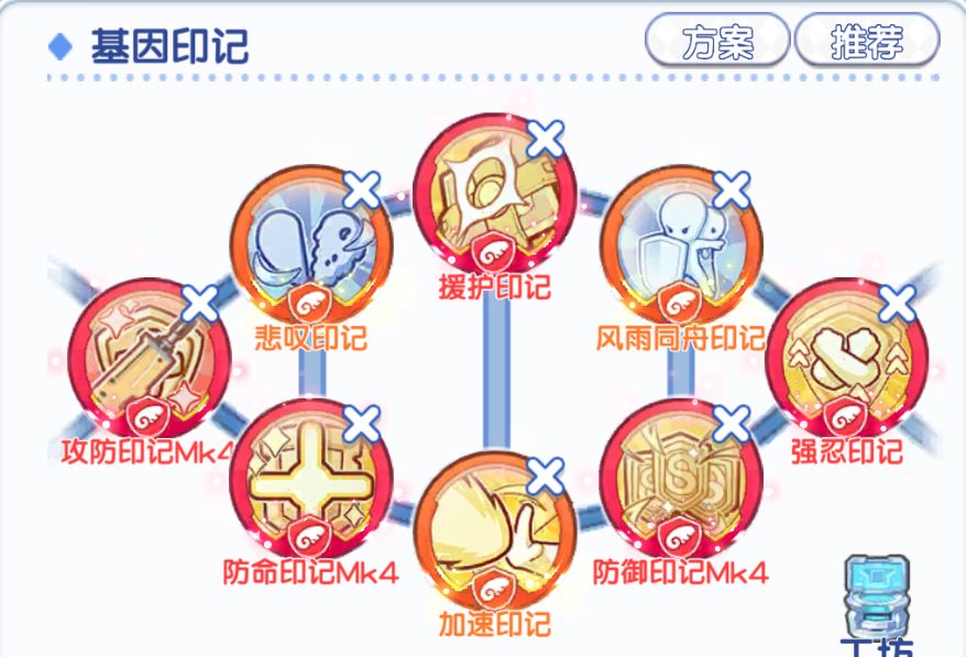 阵容的缺点就是回能有些差,需要【双宿印记】【双栖印记】带上,【蓄能印记】也不可少。