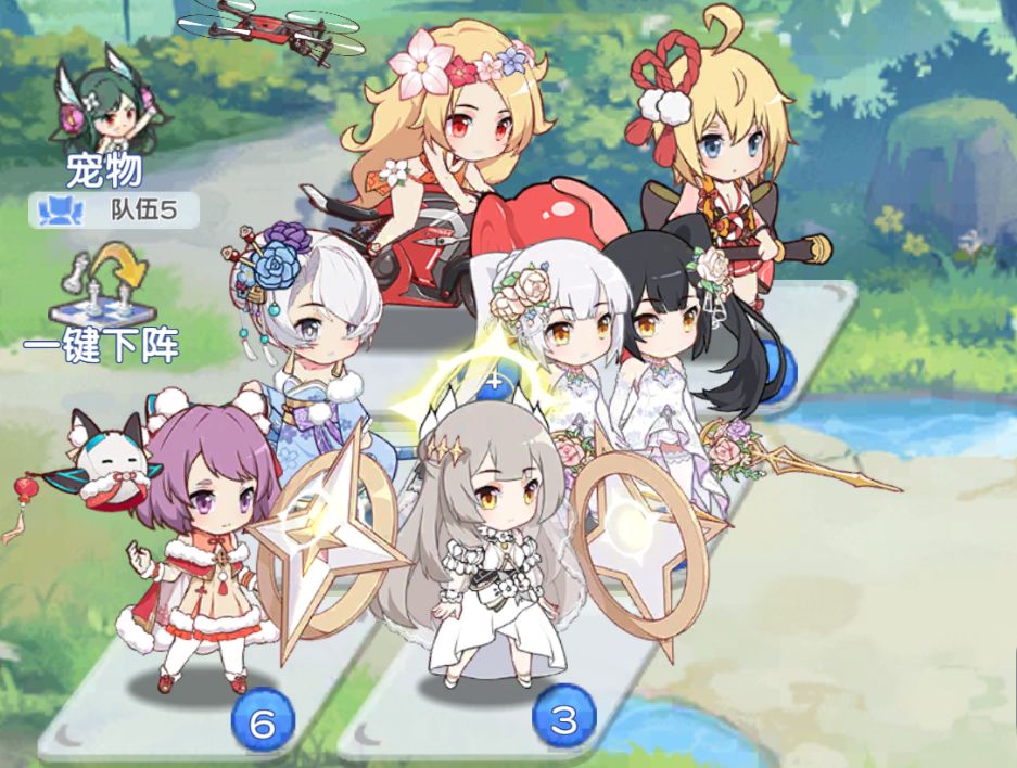 其中蒂娜可以替换成星野,不过这里是蒂娜更好,白桃桃可以换成下位洛林,治疗角色尽量是可莉尔或者春风,可以挨打回血的那种。
