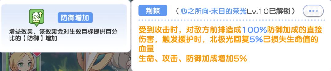 2、触发援护时,北极光回复5%已损失生命值的血量(心二)