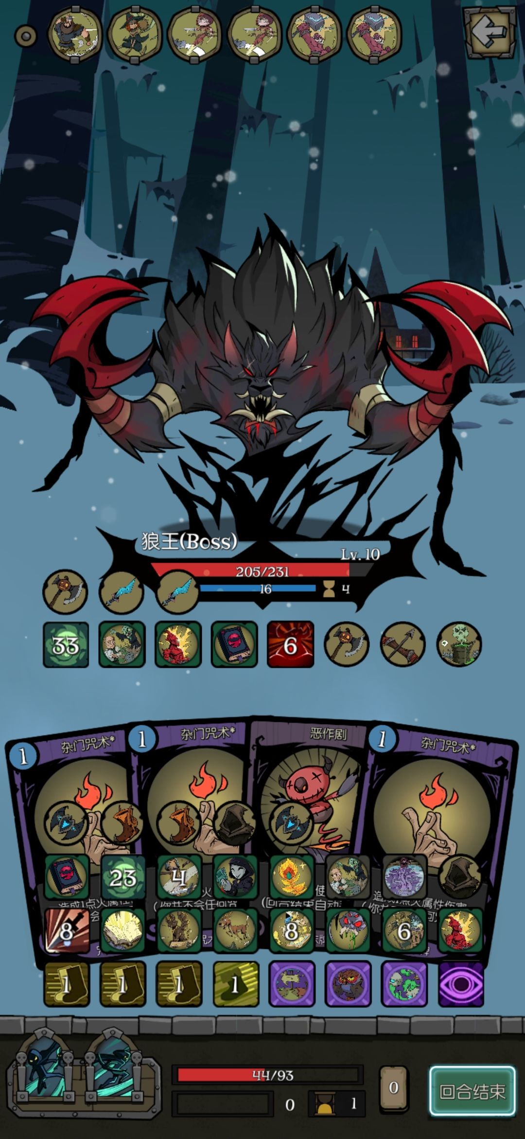 由于运气问题,只拿到了1张闪避护符,所以祝福又拿了个武器大师补闪避率,为了延长狼王寿命,最好是自己拿邪恶祭祀和天降正义,不然这两个用强力buff叠加起来狼王死得飞快,这张截图就是因为天降正义2层,每回合结束前炸本场战斗百分之40伤害,下一回合能打400多伤害了,狼王顶不住了。