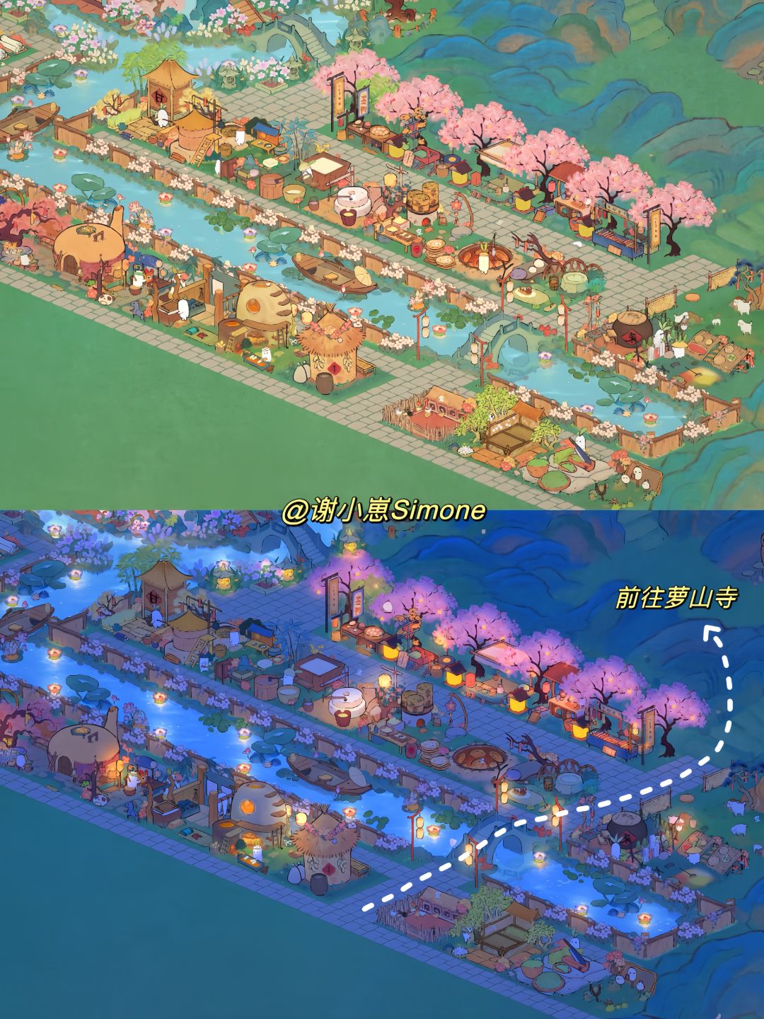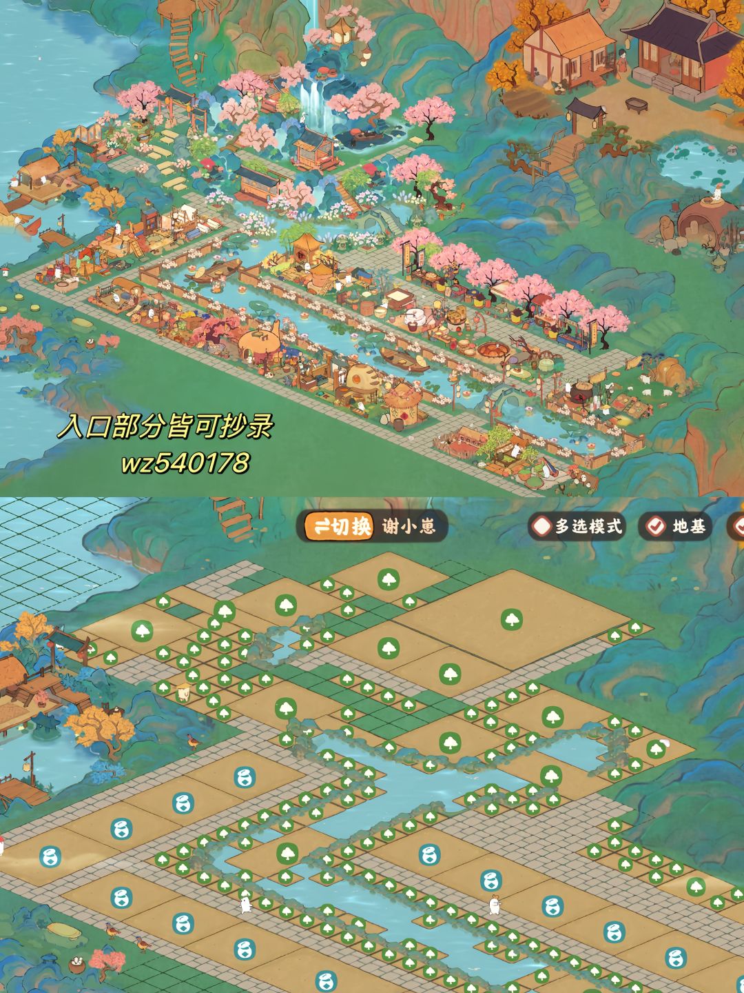 把之前的瀑布山舍扩建成沿江工业园了,尽力给打工萝们一个舒适的环境生产~最复杂的部分发了山河造景,剩下的建筑请按图上信息手动补一下~