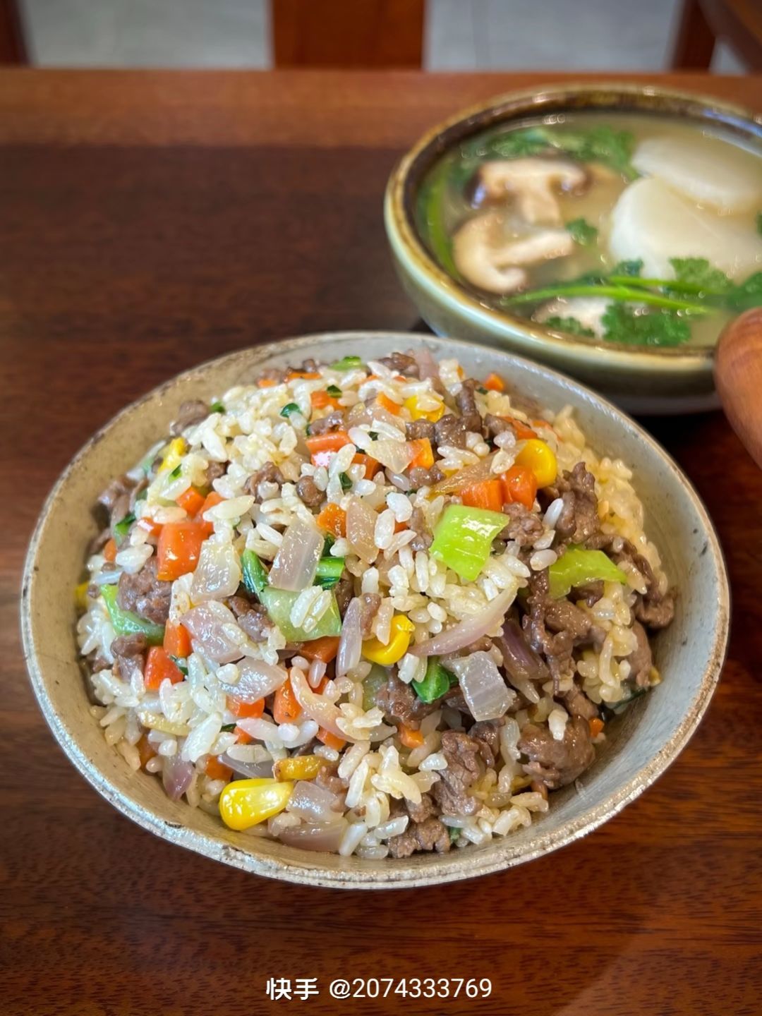 萝卜汤煮的时候,加了泡香菇的温水和一小把米