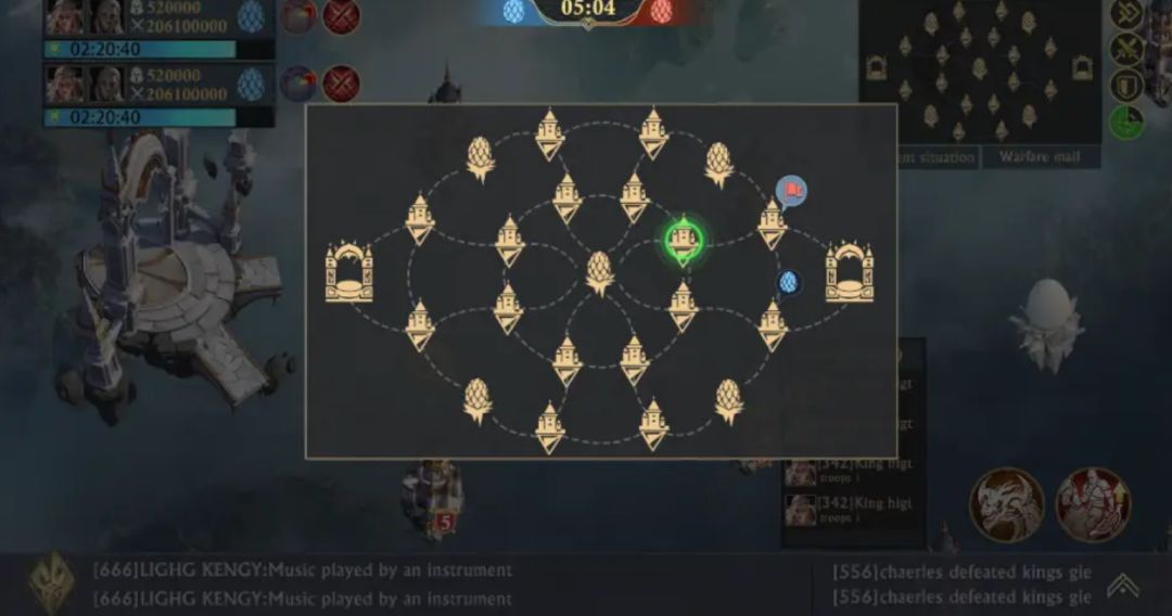 2、幻影群岛主要依赖“建筑物”进行特定路径行军,龙蛋位置会在地图中标记。敌我双方位于相同建筑下就会自动交战。