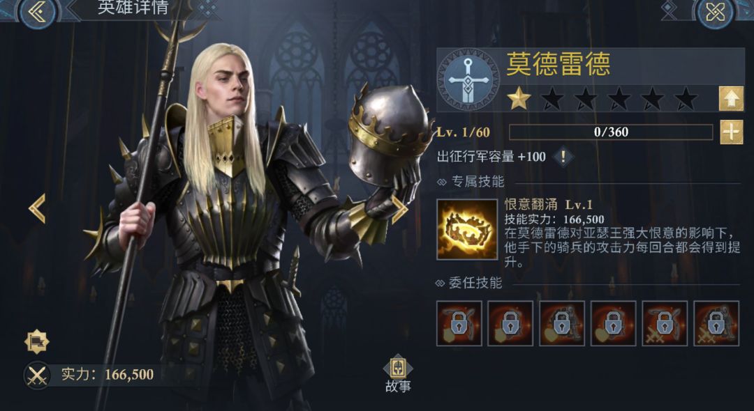 高文·红日高悬在率领部队出征、驻防时,可提升全体骑兵攻击、防御数值。属性增益可最直观的提升队伍强度,比较适合T10以上的高骑兵队伍。另外将其委任在战略家位置时,还可给部队提供多种增益,这个英雄推荐大家优先获取。