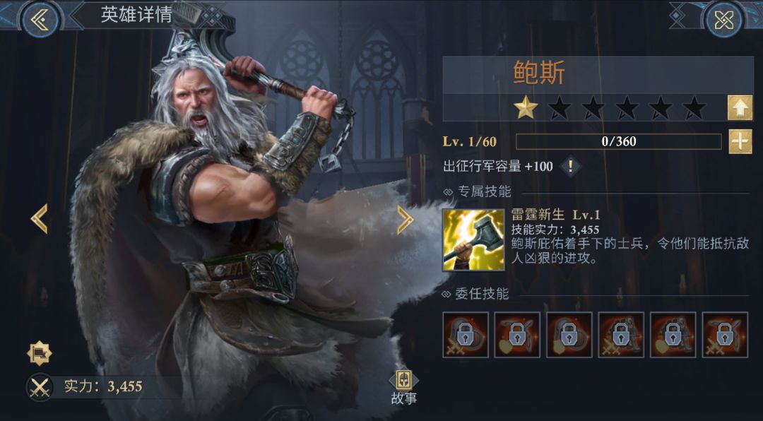 鲍斯是步兵领袖,专属技可提升己方前排步兵防御、生命值。前排用步兵提供支撑,可为后方的轻骑兵提供输出空间,可慢慢的打空敌方后排输出主力。