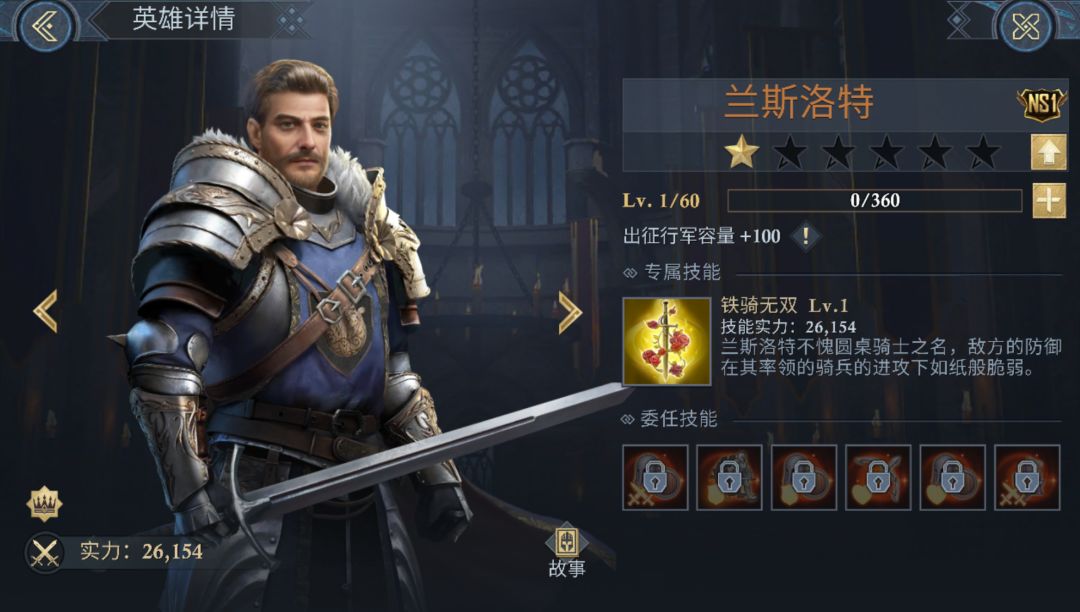 兰特洛斯可使己方骑兵队列攻击时额外发动冲锋,对相邻队列造成高额的伤害,拥有稳定的持续输出能力。亚瑟王的灵魂可使队伍每10回合发起一次圣剑审判,基于当前部队数量造成伤害。两个英雄都是“额外输出”类技能,可使己方骑兵拥有更强的前排穿透能力。