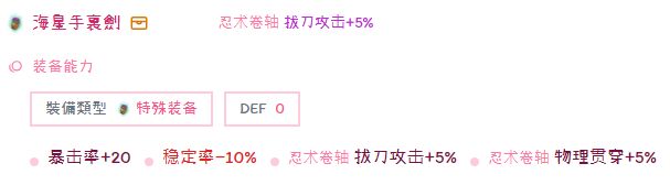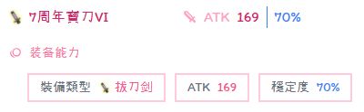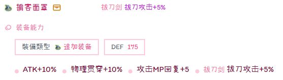 武器:属对属7周年拔刀或者灼龙拔刀或者黑影拔刀,拿把通用灵拔也能用(拔刀武器atk非常低,7周年、灼龙、黑影之间相差不多,可以酌情按经济情况选择。王石和buff和附魔对拔刀的影响相对武器atk更大)