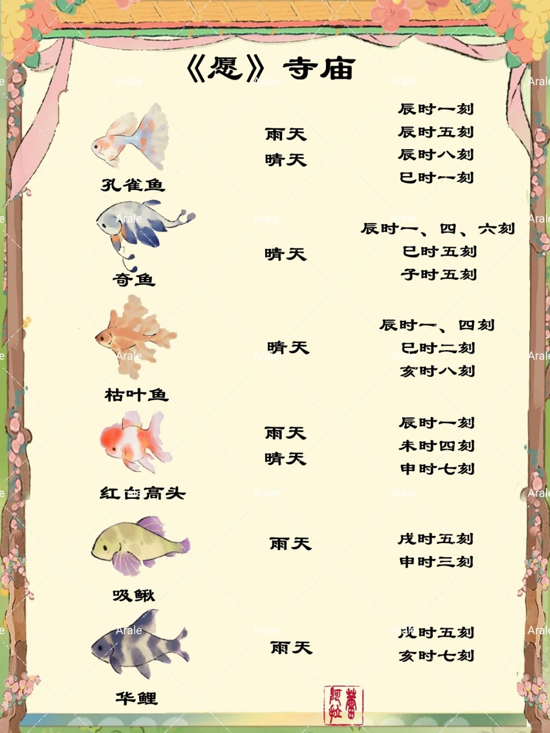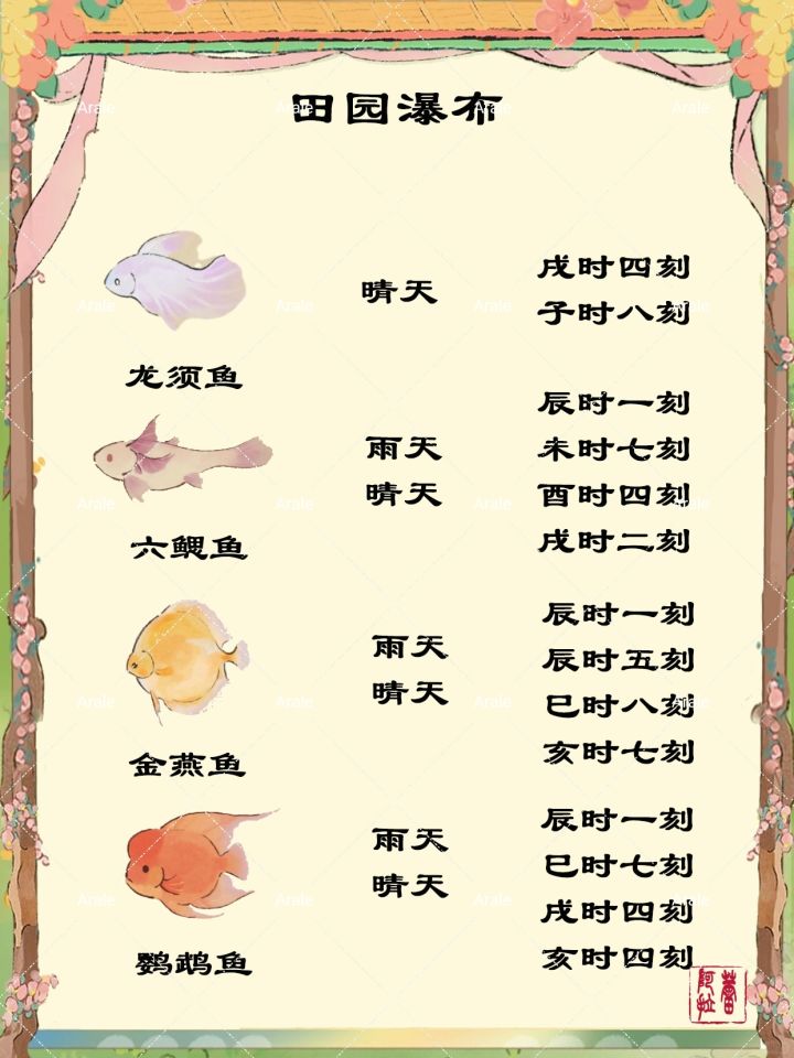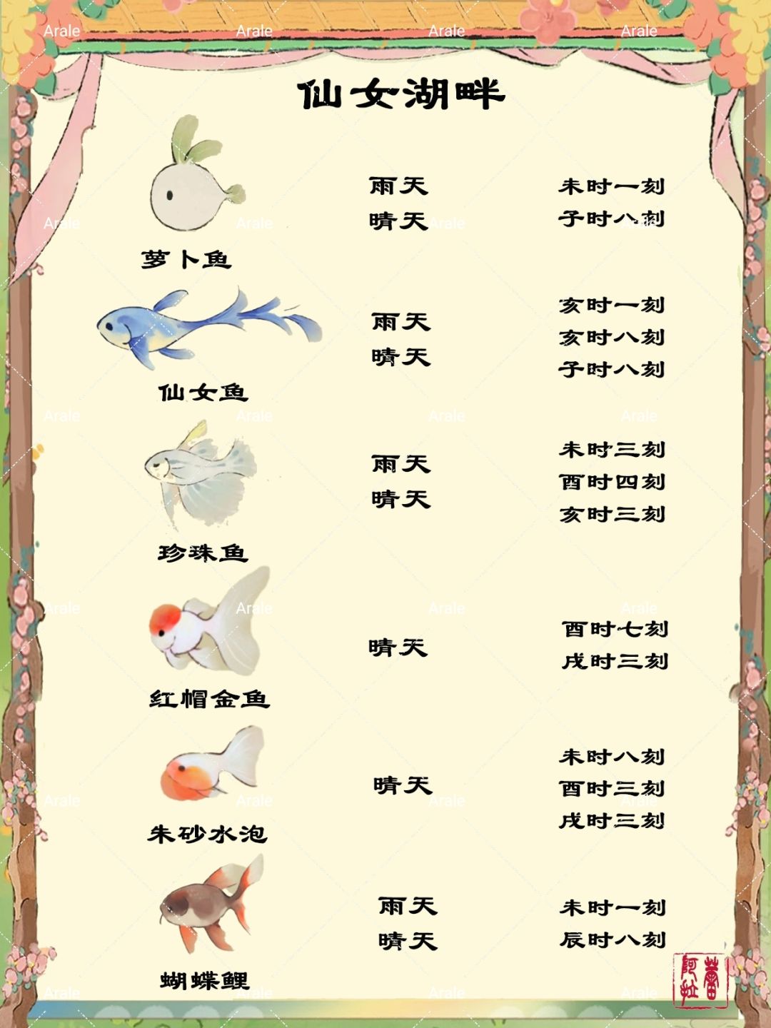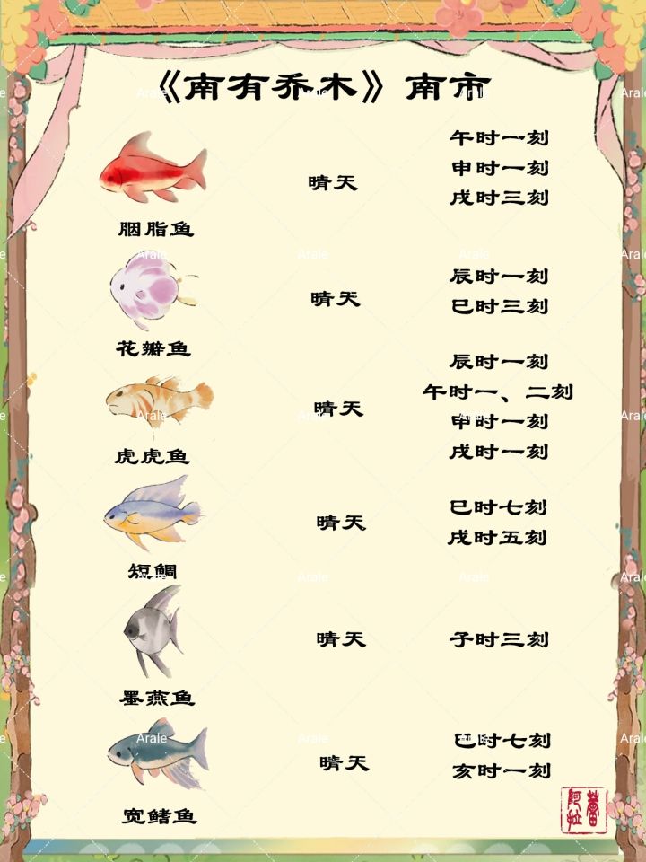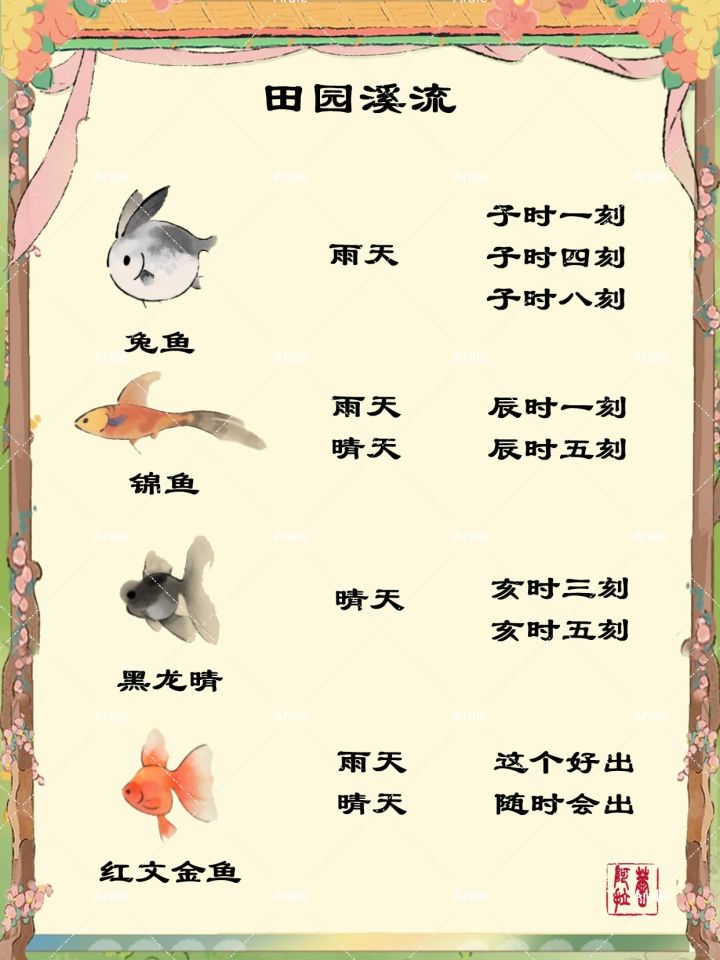 整理了一下桃源的钓鱼时间,一直钓不到的鱼可以参考一下这个时间,几率会提高很多