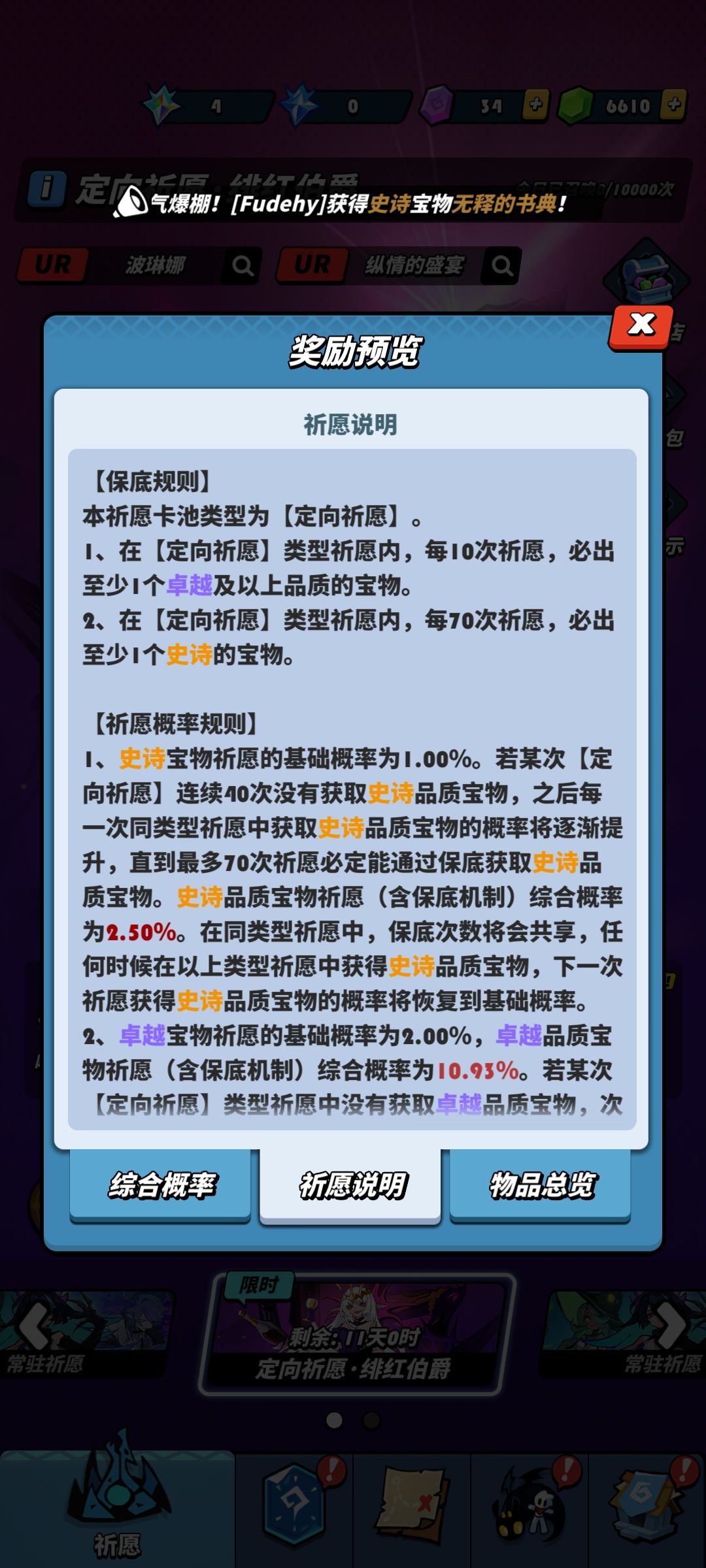 还有,每个账号在每个阶段可获取的限定史诗宝物数量是相等的,