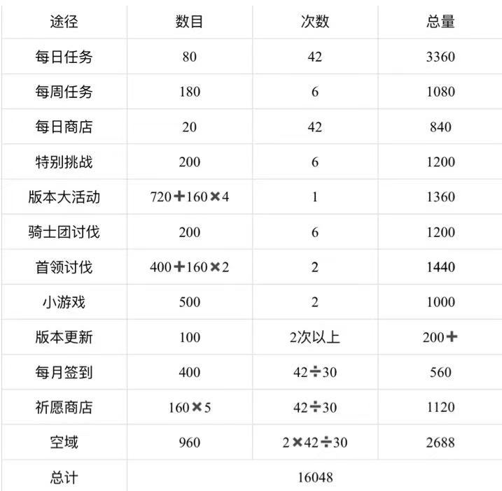 每个版本可稳定获得的⻰晶数量如上,为⼤于等于 16048。