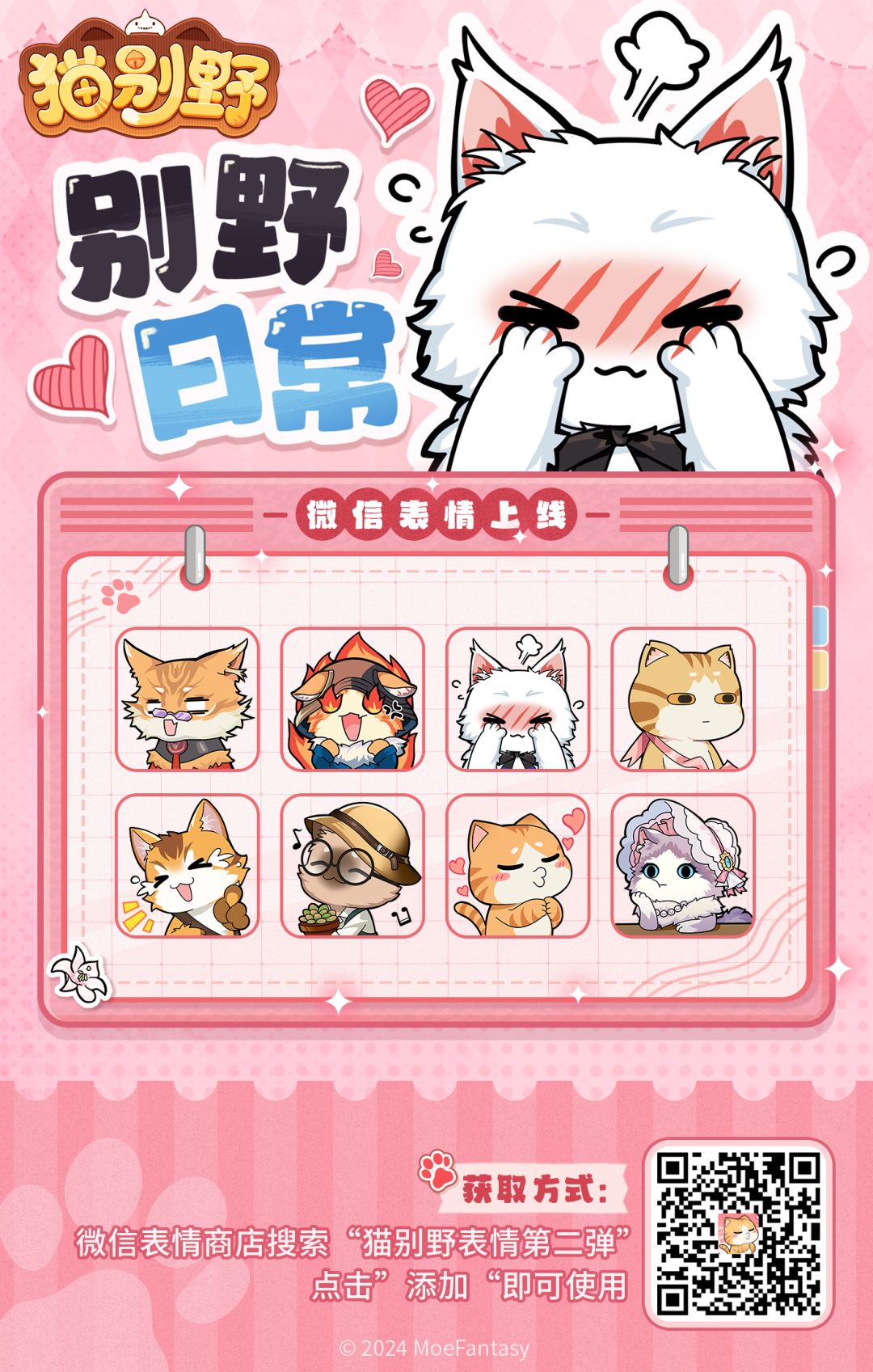 “别野日常”第二弹表情包正式上架表情商店,表情包内记录着别野中猫猫们各种有趣的日常,聊天过程中也将有它们的陪伴。