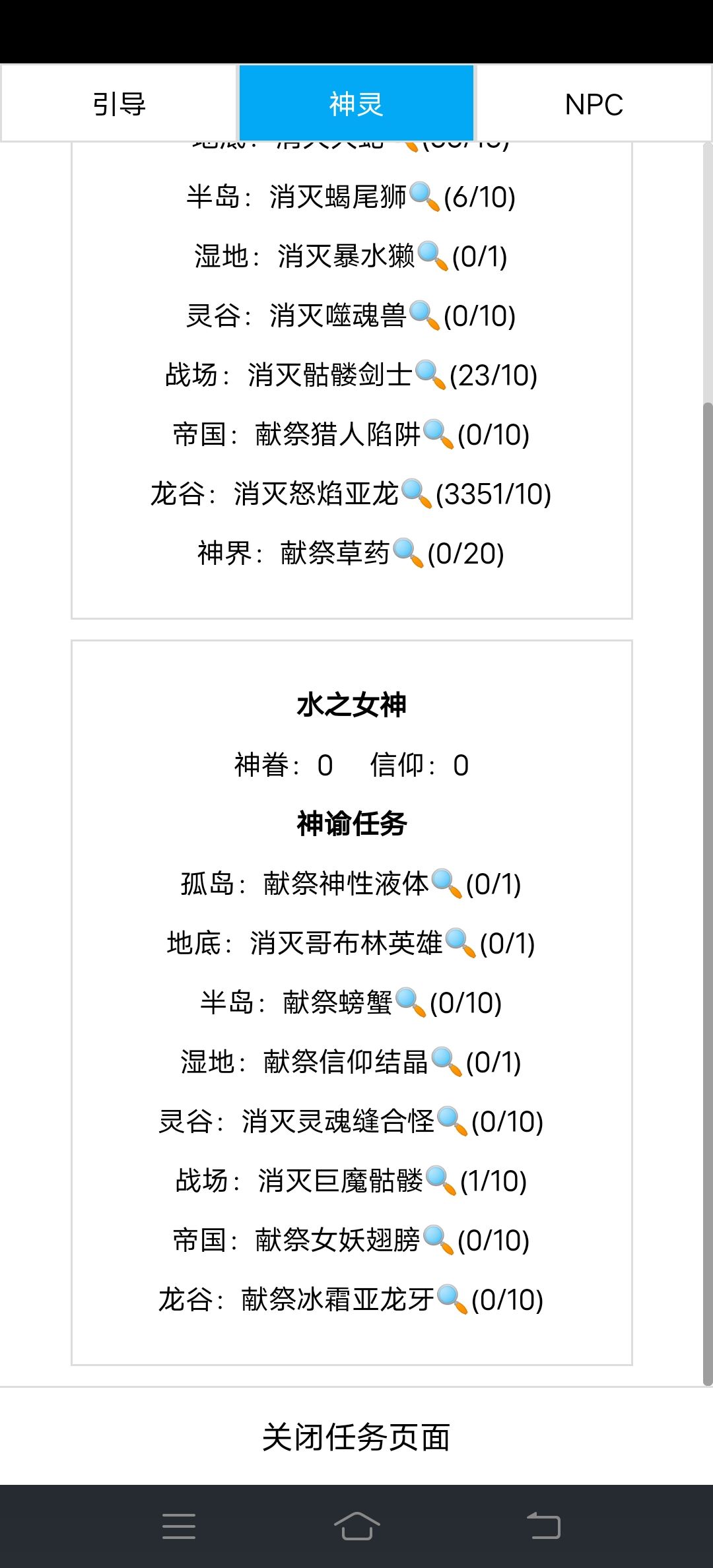 完成击杀水之女神后,会清除-10000神眷带来的神罚,不过神殿变成遗址了,在任务页面就消失一个神殿,