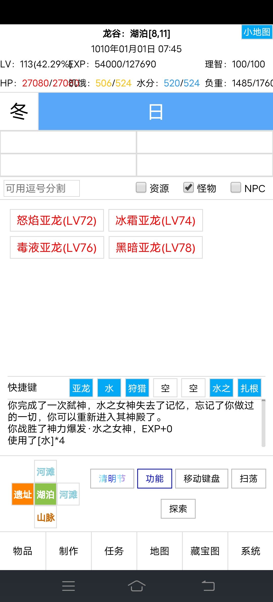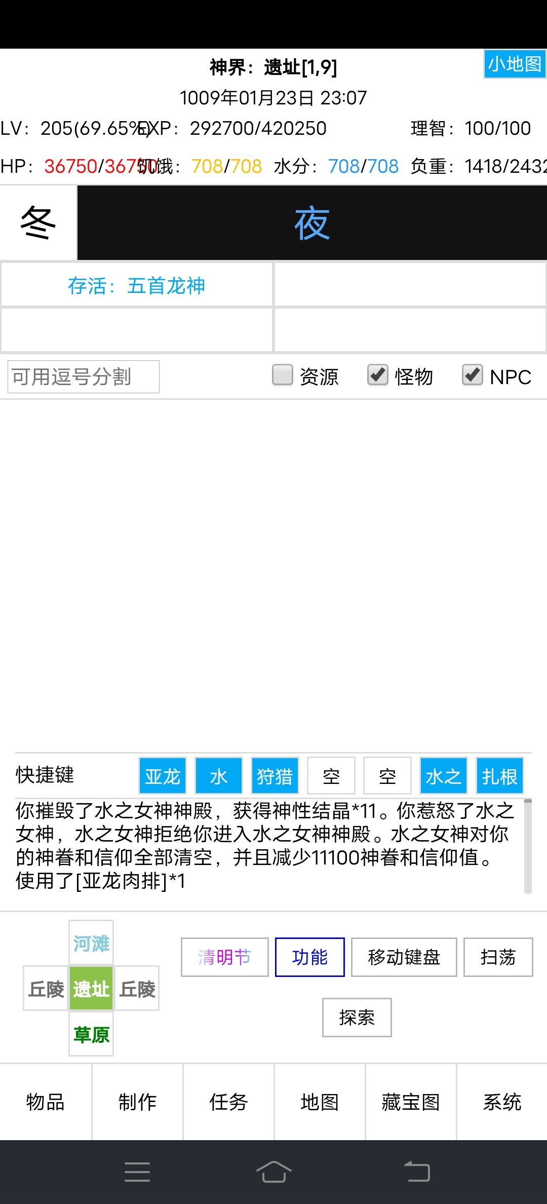 准备工作做好了,我摧毁神殿以后,神殿就没了,地图显示遗址,找个怪准备战斗。