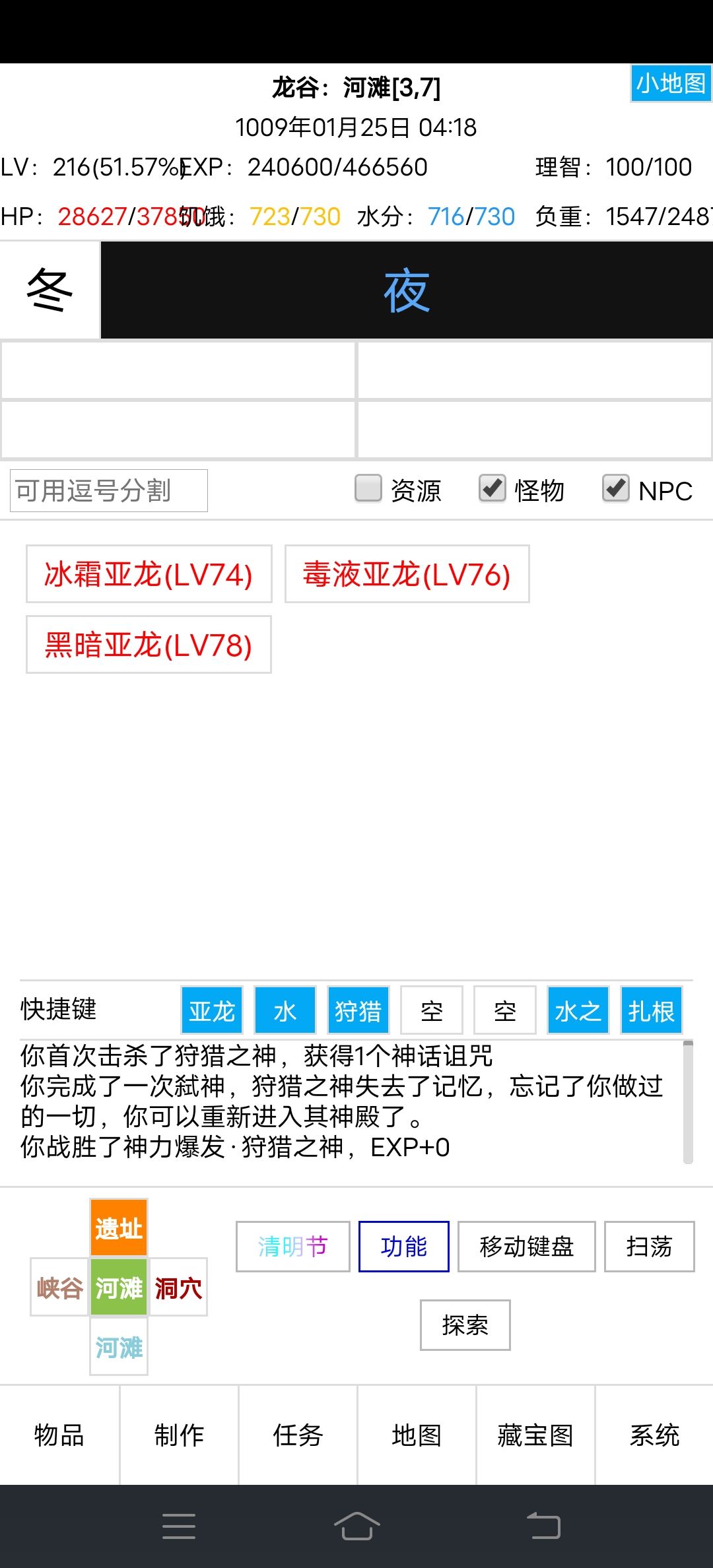 二、水之女神击杀后,再次去击杀狩猎之神,完成一个跑环任务,所以等级变为216级了,呦呵,跑环还给力一个独角兽🦄,半人马应该很喜欢。