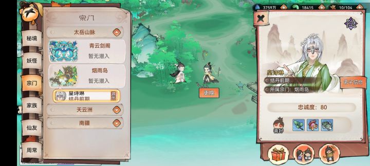 招募:这里招募推荐先查看一下这个弟子的属性是否是你需要的,需要的就留下,不需要踢出去还能赚取仙缘点