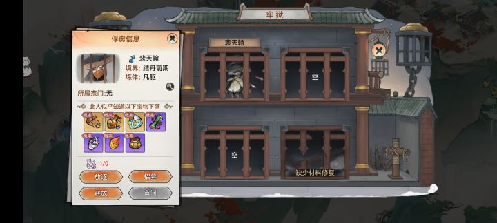 驱逐:需要消耗一张虚空符,牢狱不会进入cd状态且对方宗门不会降低好感度。