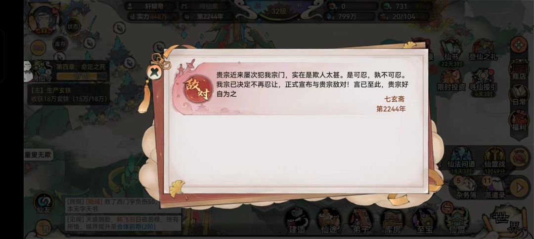 在最强祖师的新版本中,世界宗门玩法是目前新版本中的一个重要组成部分,玩家可以通过以下两种方式提升与宗门的好感度