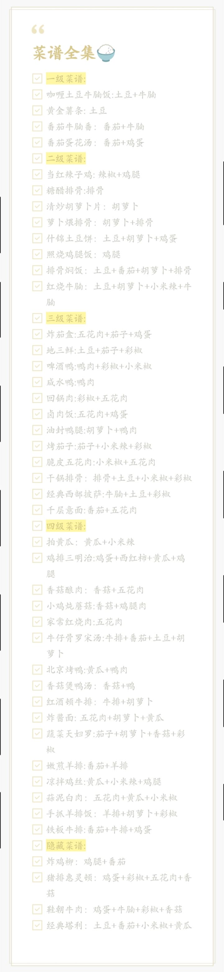 隐藏菜谱: