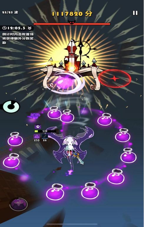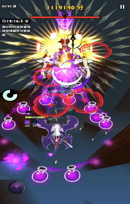 图一是未通关的,图二通关了,且进boss快了11秒。其中核心技巧就是控球,时刻保证自己有球状态,在剧毒值50以上怼脸转怪。无论在主线或者其他关卡都非常重要,既可以控制血量,也可以降低环境弹幕量(控球可以参考阿达克撒的b站视频)