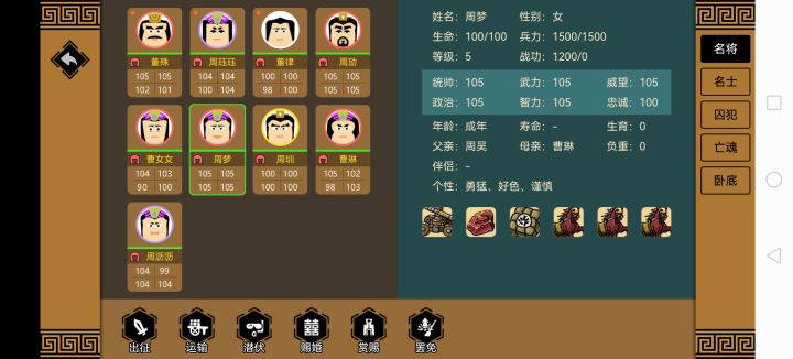 1,利用周瑜,曹操(好色优秀)等等生高智力高统帅的娃,可以SL。