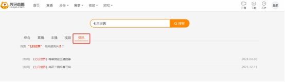 进入虎牙直播首页,搜索“七日世界”,在搜索结果页面切换到“资讯”一栏,即可看到“帷幕测试招募公告”,点击链接即可了解活动详情。