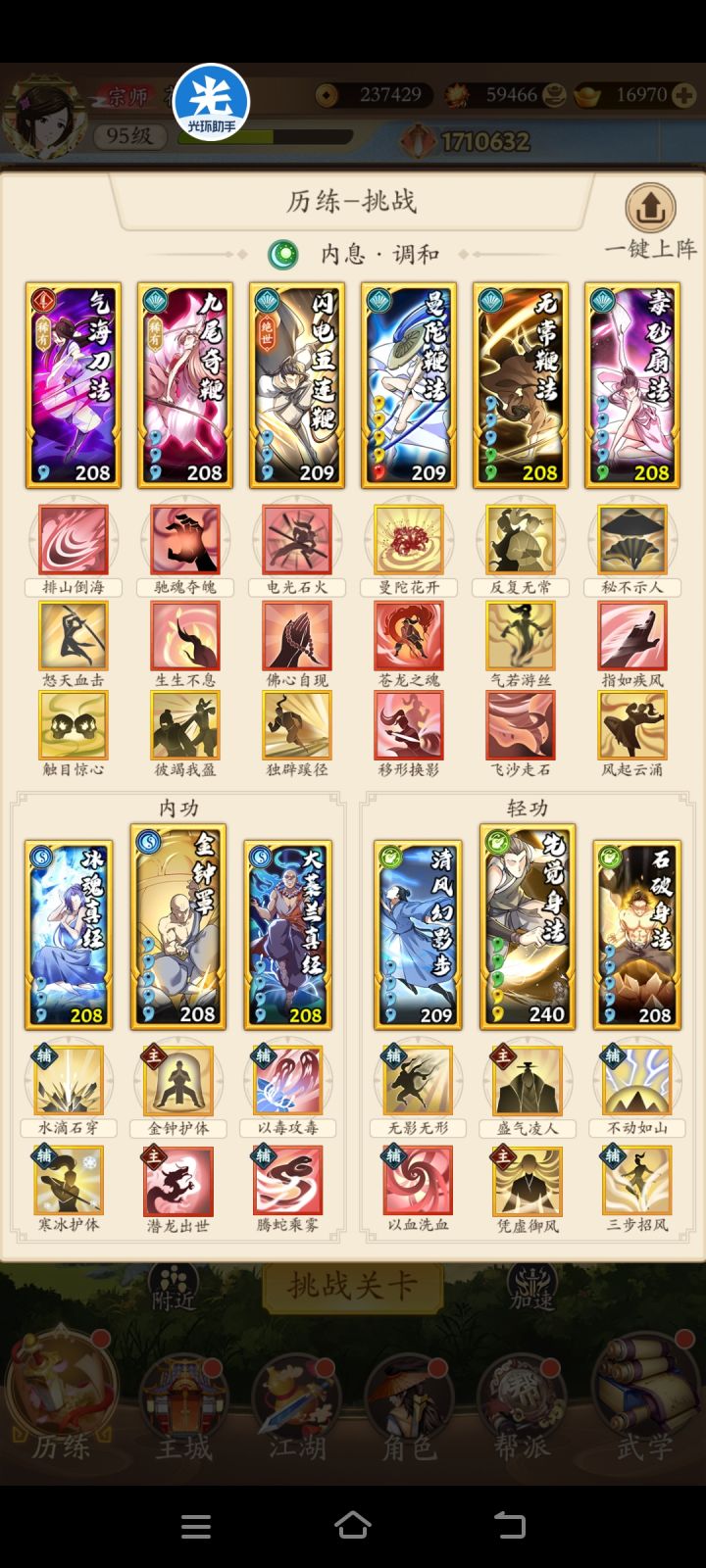 这应该是这应该是最低配置,啥也没有,但就是过了,我看论坛都是第一层阴吸,第二层要燃木什么的,这对于我们调和奇玩家就很不又好,然后自己就以现阶段有的慢慢试,第一层就用调和奇硬打,多带点回血的,第二层就是普通的吸内拳,我吸内是因为啥也没有(关键的大彻,临危都没有),就随便配了个勉强的能用的,塔的层数可以忽略,本人比较懒不愿意挂塔,具体的借鉴就好,有问题你们自己慢慢优化,毕竟我差的招式太多了