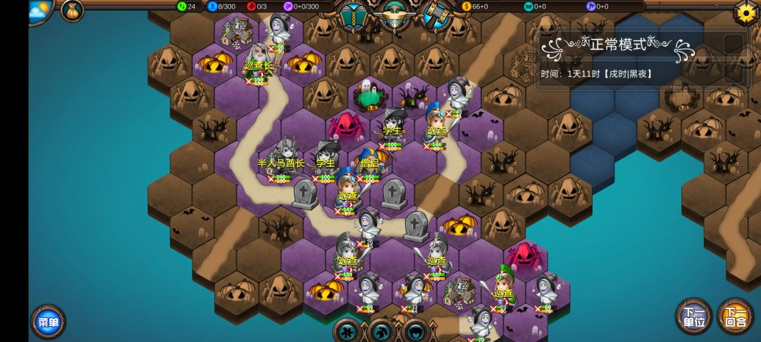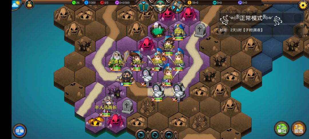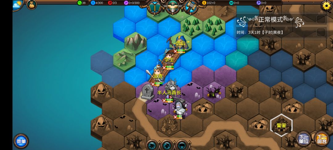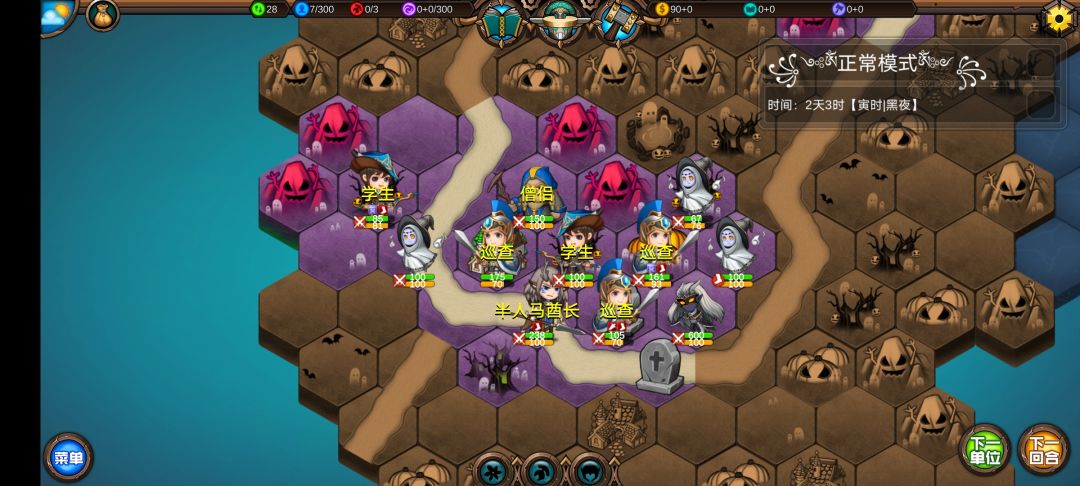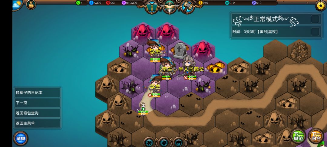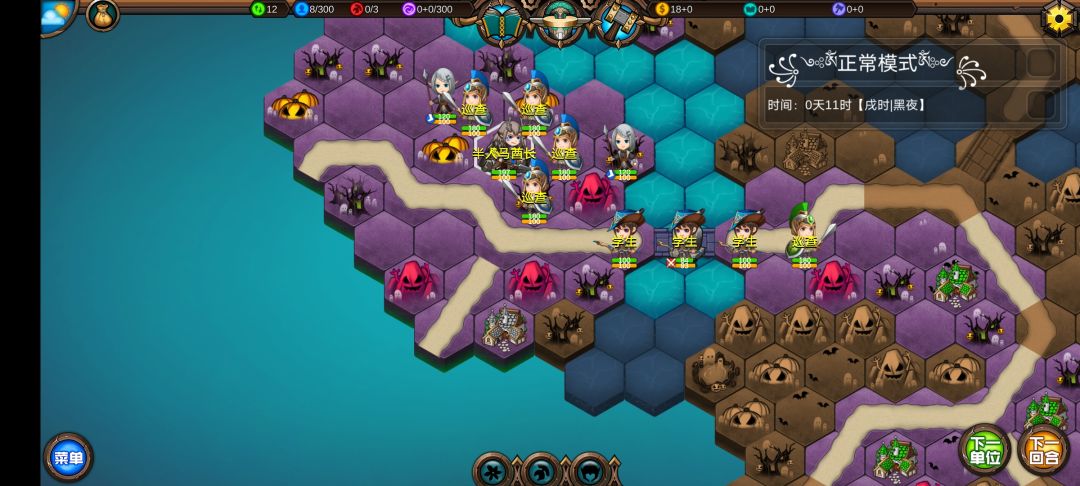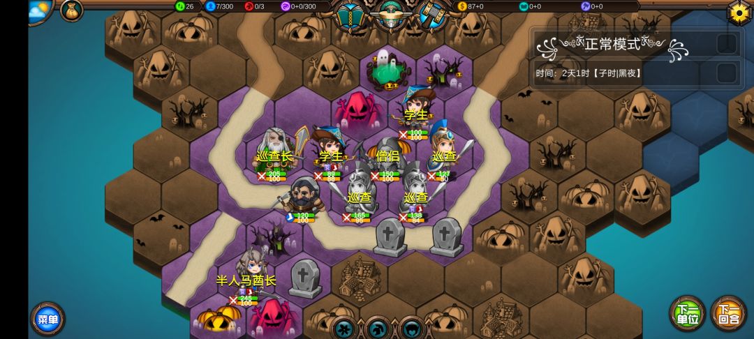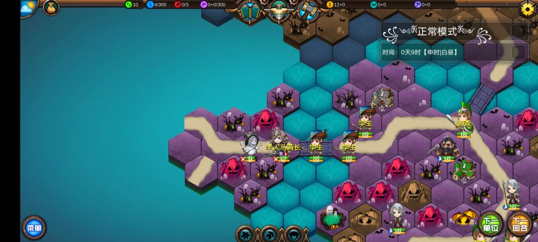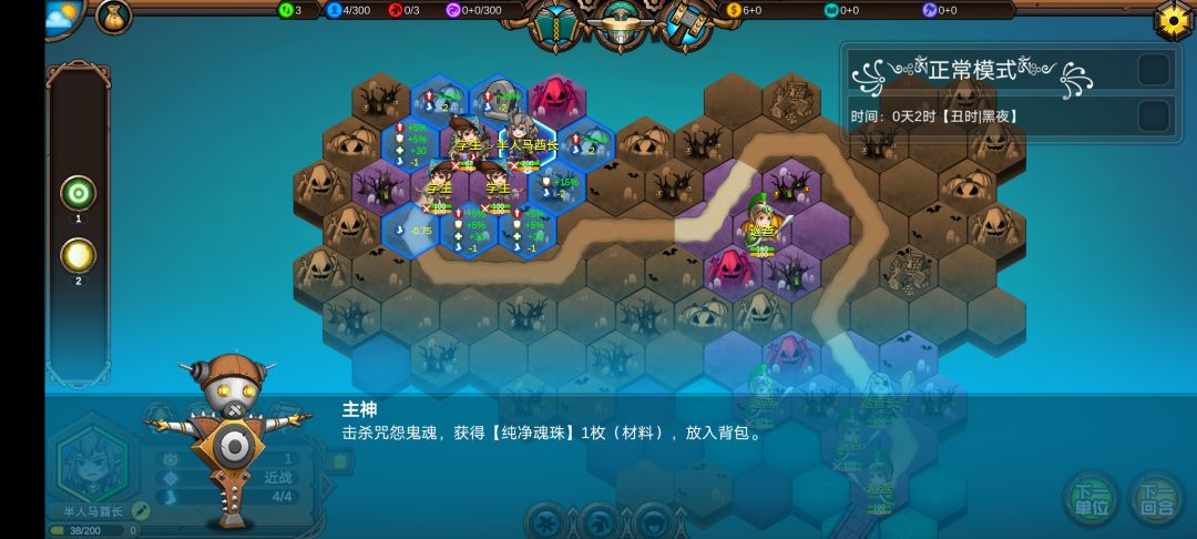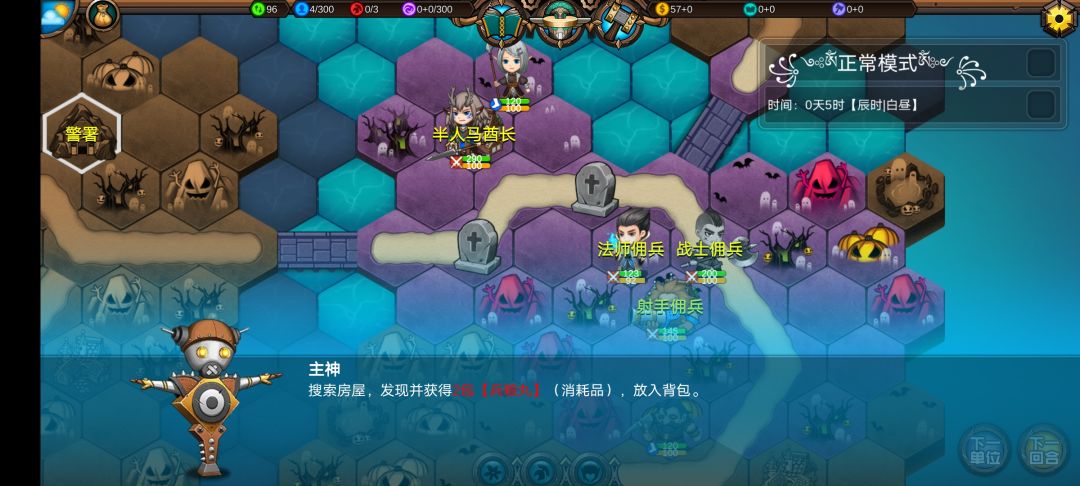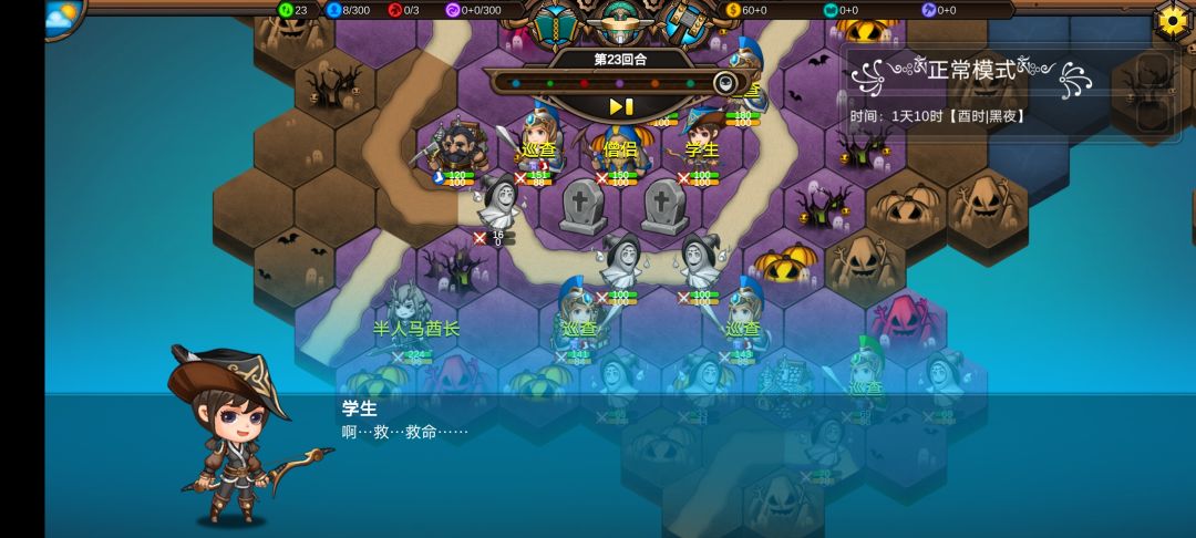 仅有的一点潜能学了个技能,仅有的1100多积分雇佣了3个不同的佣兵,还剩100多积分,10回合咒怨连寺院都到不了,哎!