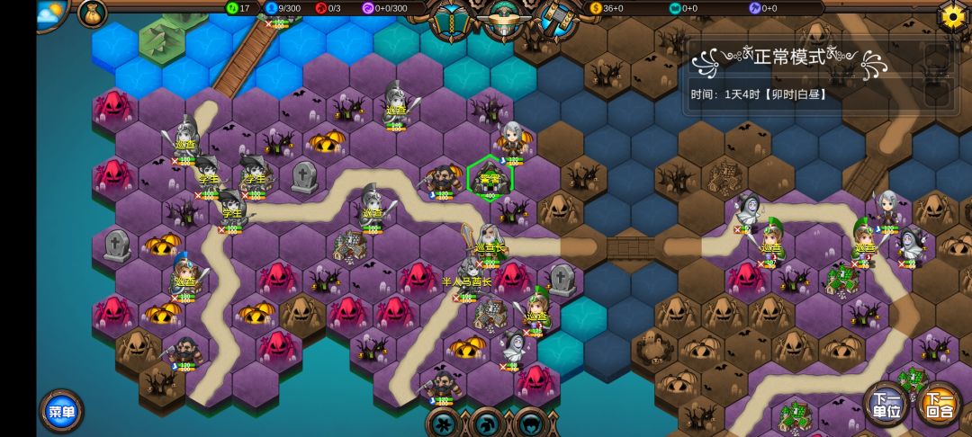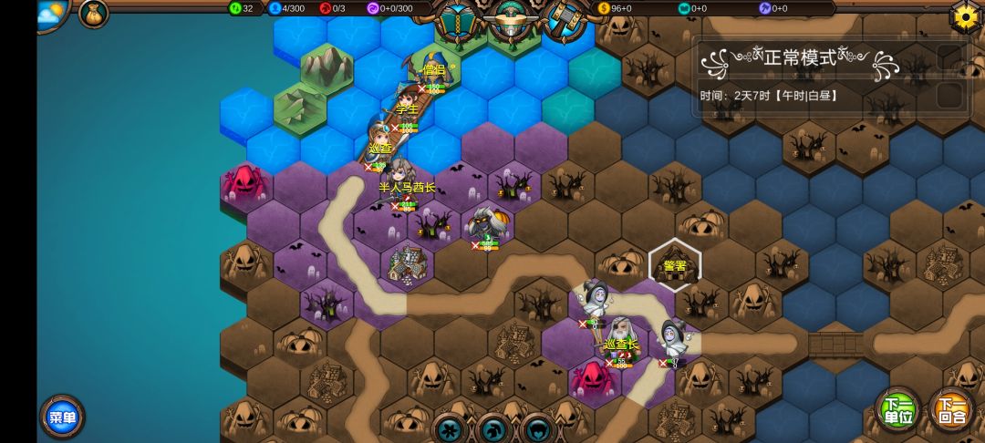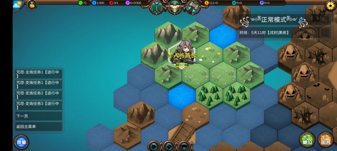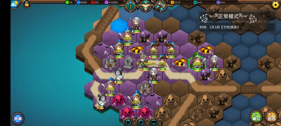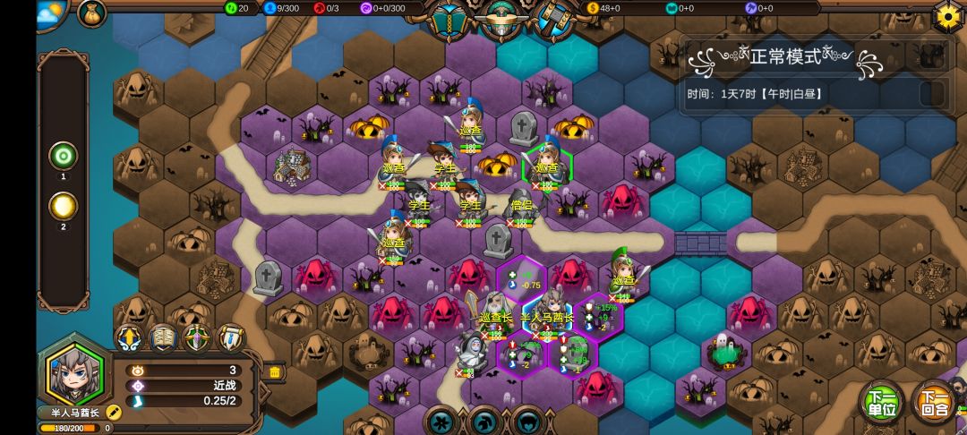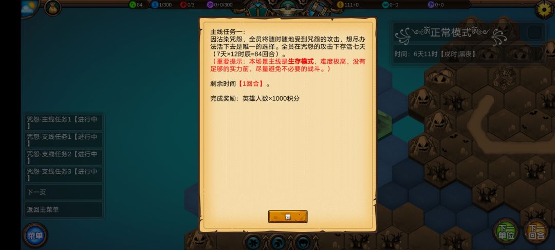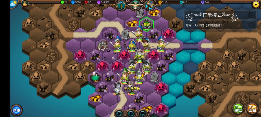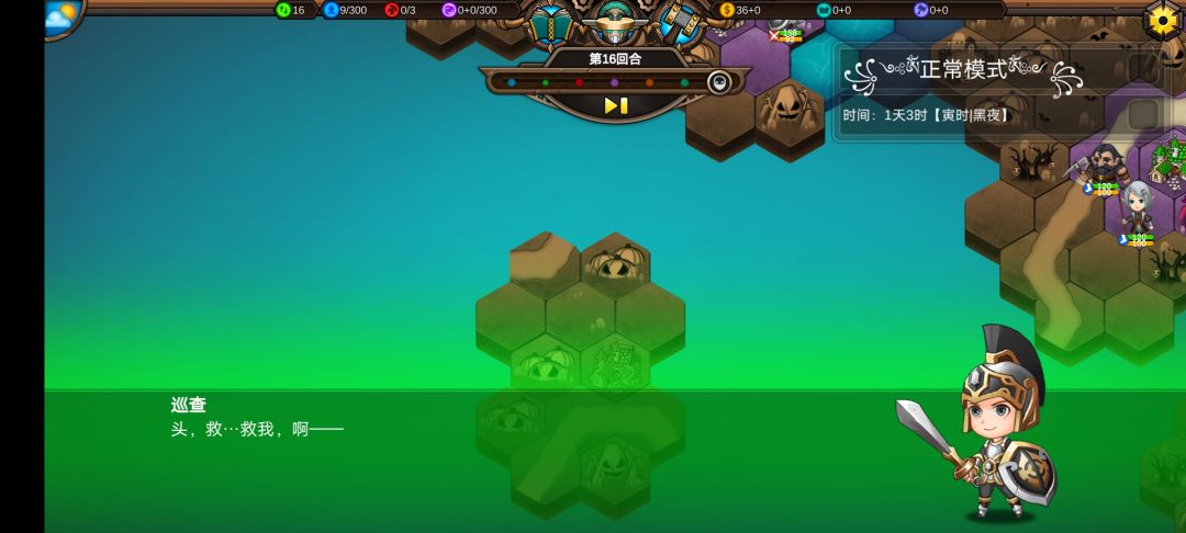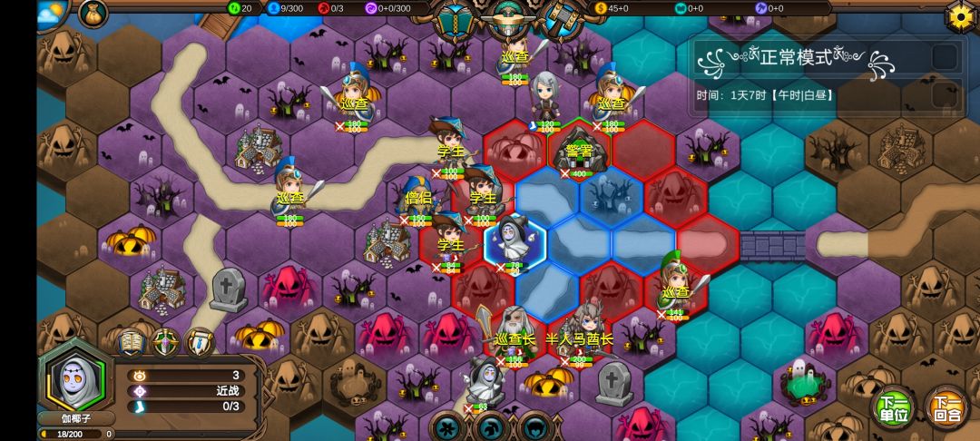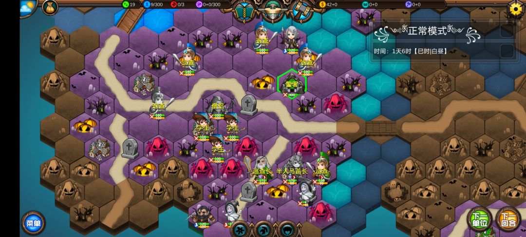 仅有的一点潜能学了个技能,仅有的1100多积分雇佣了3个不同的佣兵,还剩100多积分,10回合咒怨连寺院都到不了,哎!