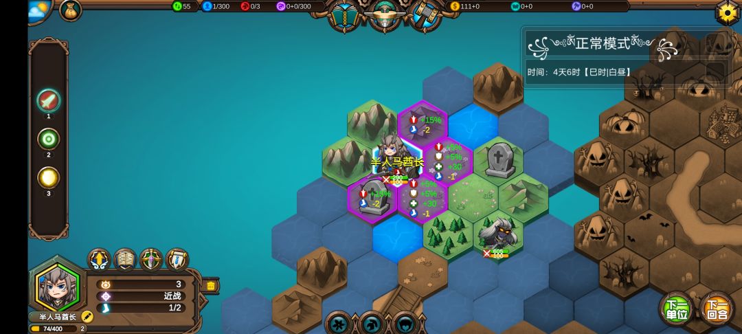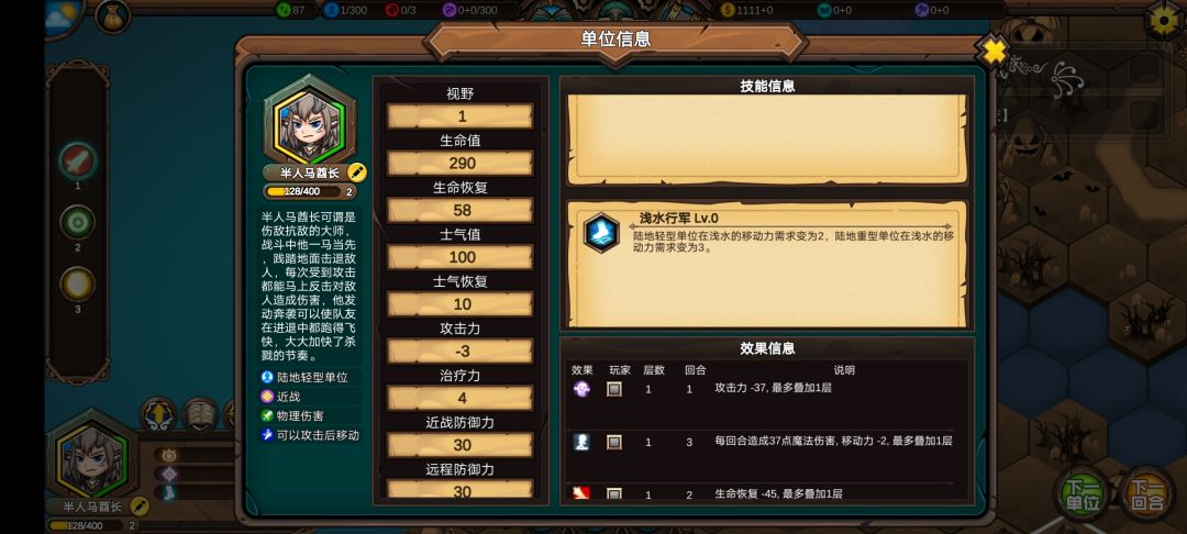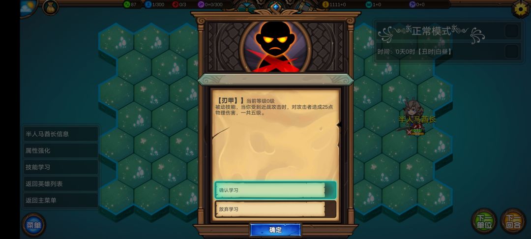人马接近3级,学习1级技能,三个佣兵基本都1级了。