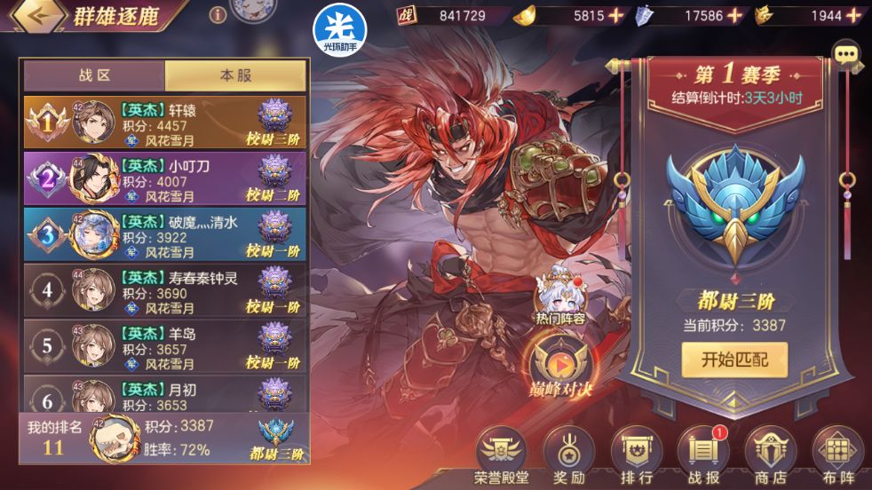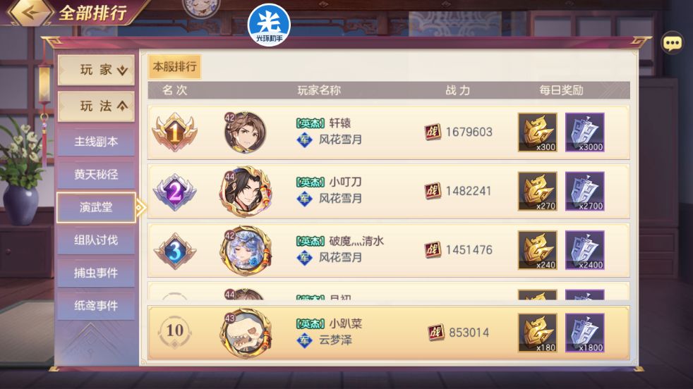 不小心打了个前10,截个图庆祝一下。后面就只能等氪佬脱坑才能进前十了。