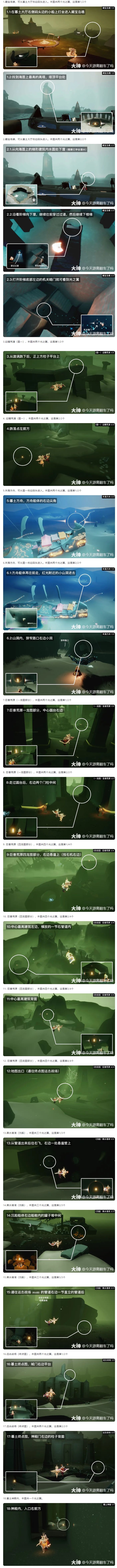 本帖将展示暮土的18个光之翼的具体位置,其余地图光翼位置可点击上方超链接前往。 暮土共计18个光之翼,藏宝岛礁2个、边陲荒漠(图一)2个、失落方舟2个、巨兽荒原(一龙图部分)2个、巨兽荒原(四龙图部分)4个、黑水港湾(沉船)3个、远古战场2个、暮土神殿内1个。