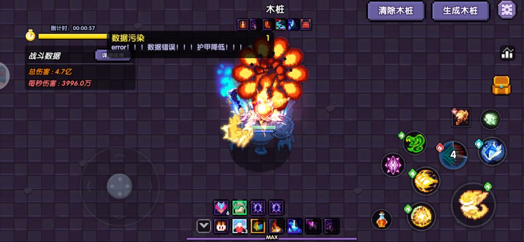 二、分步计算符文下,我们可以看到,首领木桩,在带有霸体图标的情况下仍然出现被眩晕(无法攻击无法移动)的显示【木桩头上出现旋转的星星】