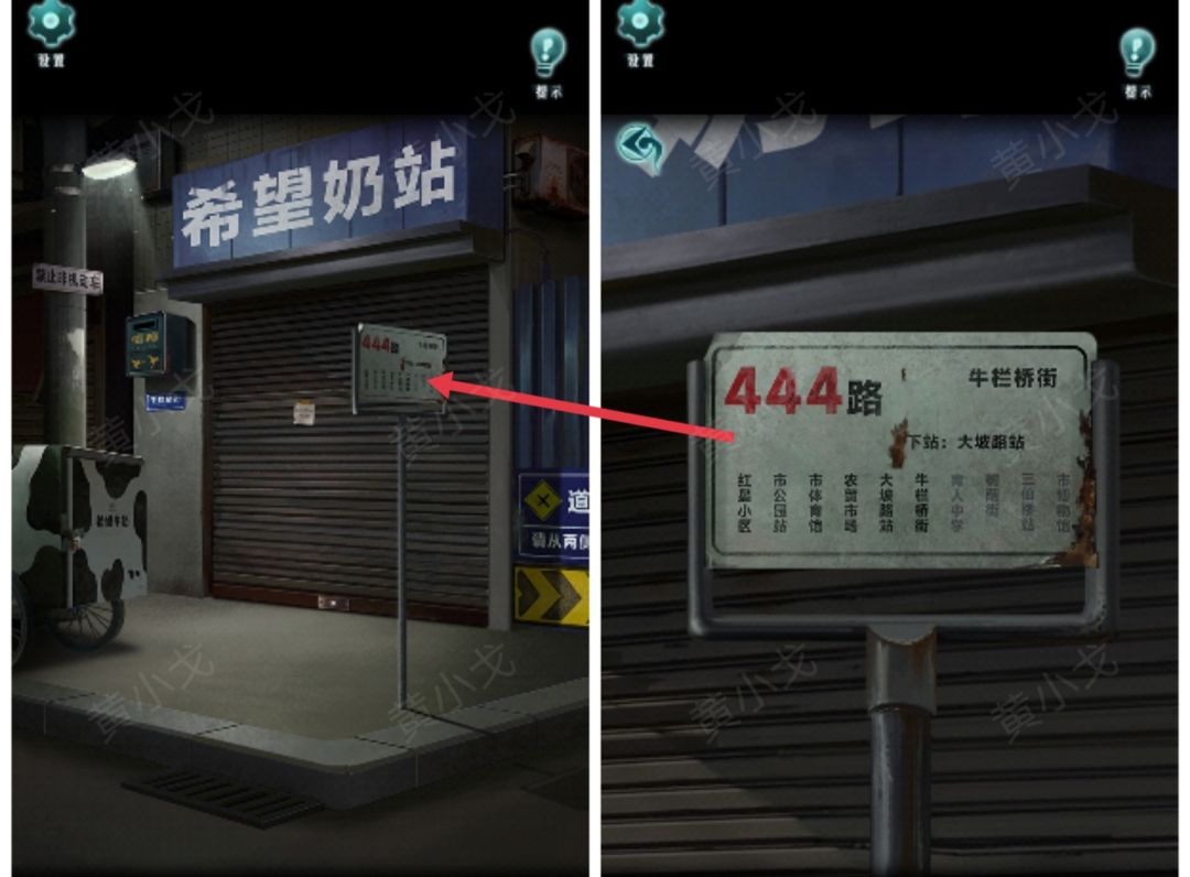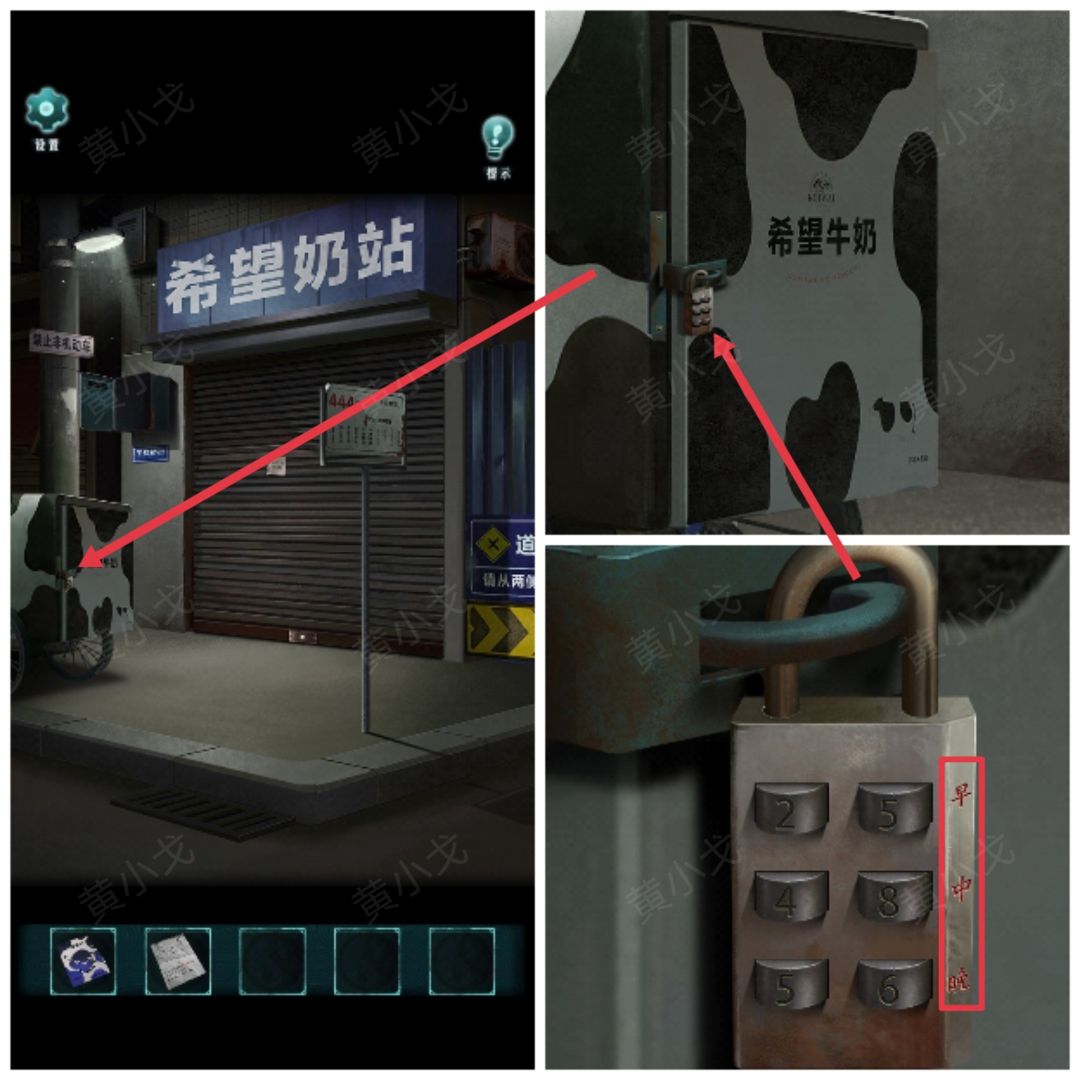 6.点击订奶车门上的密码锁,根据上面的提示(早中晚),结合【订奶记录】和站牌上的线索,输入密码:254856(从近到远:中学、菜市、小区)