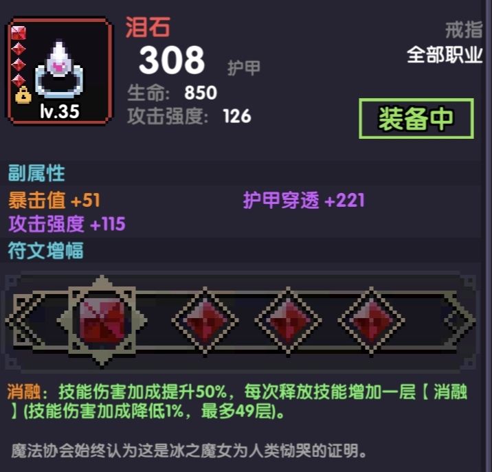 而这个开关技能除第一次外,后继释放不属于“使用技能”。也就是说泪石不会掉被动