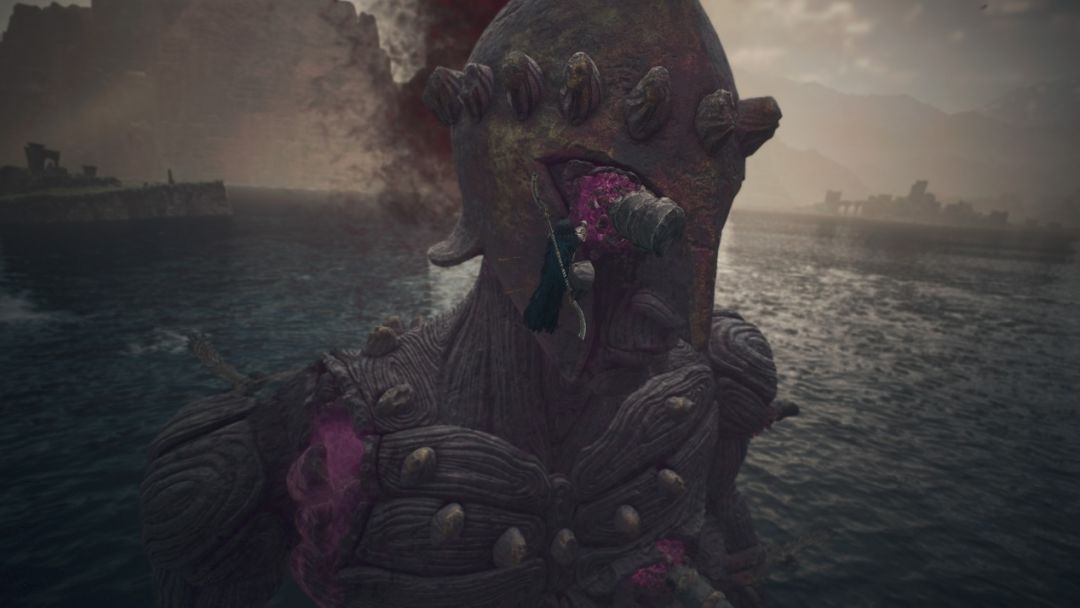 但我依然认为,这是我自己的问题,是卡普空“真实”的设计故意使玩家五味杂粮,这是《龙之信条》系列的一大特色。直到我在接下来的流程里收到的负面情绪远要超越探索获得惊喜,这些堆积如山的垃圾终于在结尾的最后一刻彻底爆发了。那时我在无意中触发了真结局机制,漫天的腥风血雨瞬间将我的情绪拔到了顶端,我意识到游戏的流程已所剩无几,所以在此期间抓紧探索世界收集物品,并把仅剩的支线任务都尽数完成,正当我以为自己可以漂亮收尾时,一次地形bug将我卡在了悬崖边上,我纵身一跃预判失败,掉入无底深渊殒命于此。
