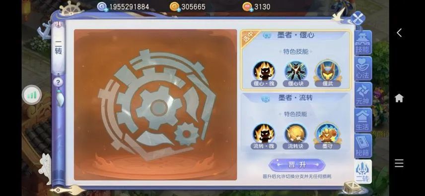 羽翼技能分为职业被动和通用被动,职业被动推荐偃心和玄甲:偃甲状态是墨者的终极变身,处于这个状态下的墨者实力大幅度增强;偃心可以增幅偃甲状态的回合数,玄甲可以加速变身偃甲的前置回合。