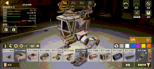 在该区域中,轻触部件会显示部件的相关信息。而长按该区域内的部件图标或是战车上已经装配的部件则能够将部件拖动至合适的区域进行组装。