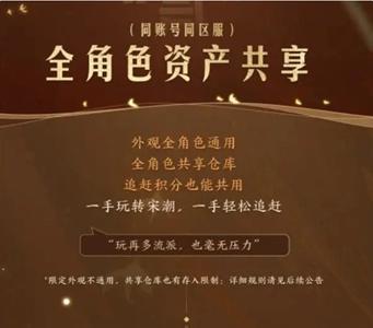 这个全角色资产共享主要可以分为三个部分,分别是共享外观、共享追赶积分、共享仓库。