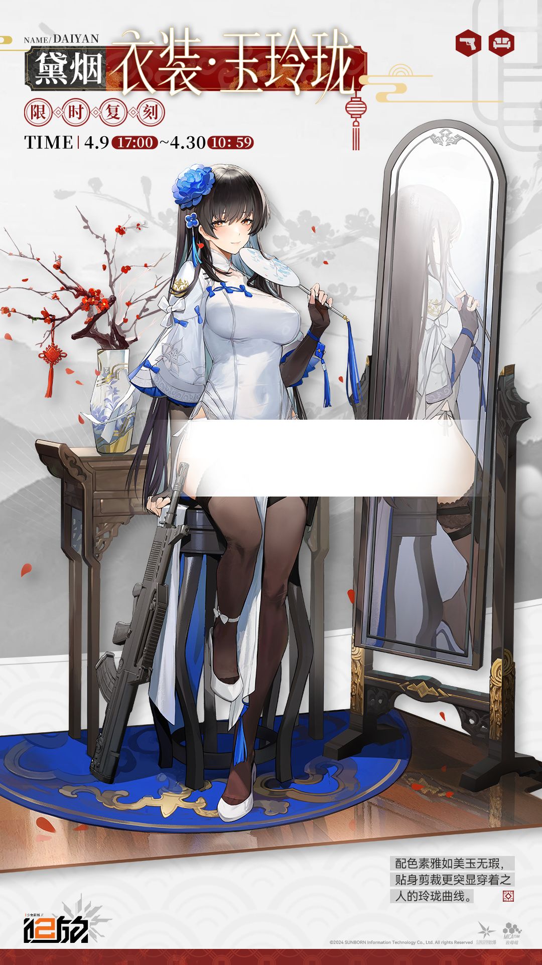 尊敬的指挥官,黛烟<衣装 · 玉玲珑>将于4月9日17:00~4月30日10:59 期间限时上架【外观采购】商城。