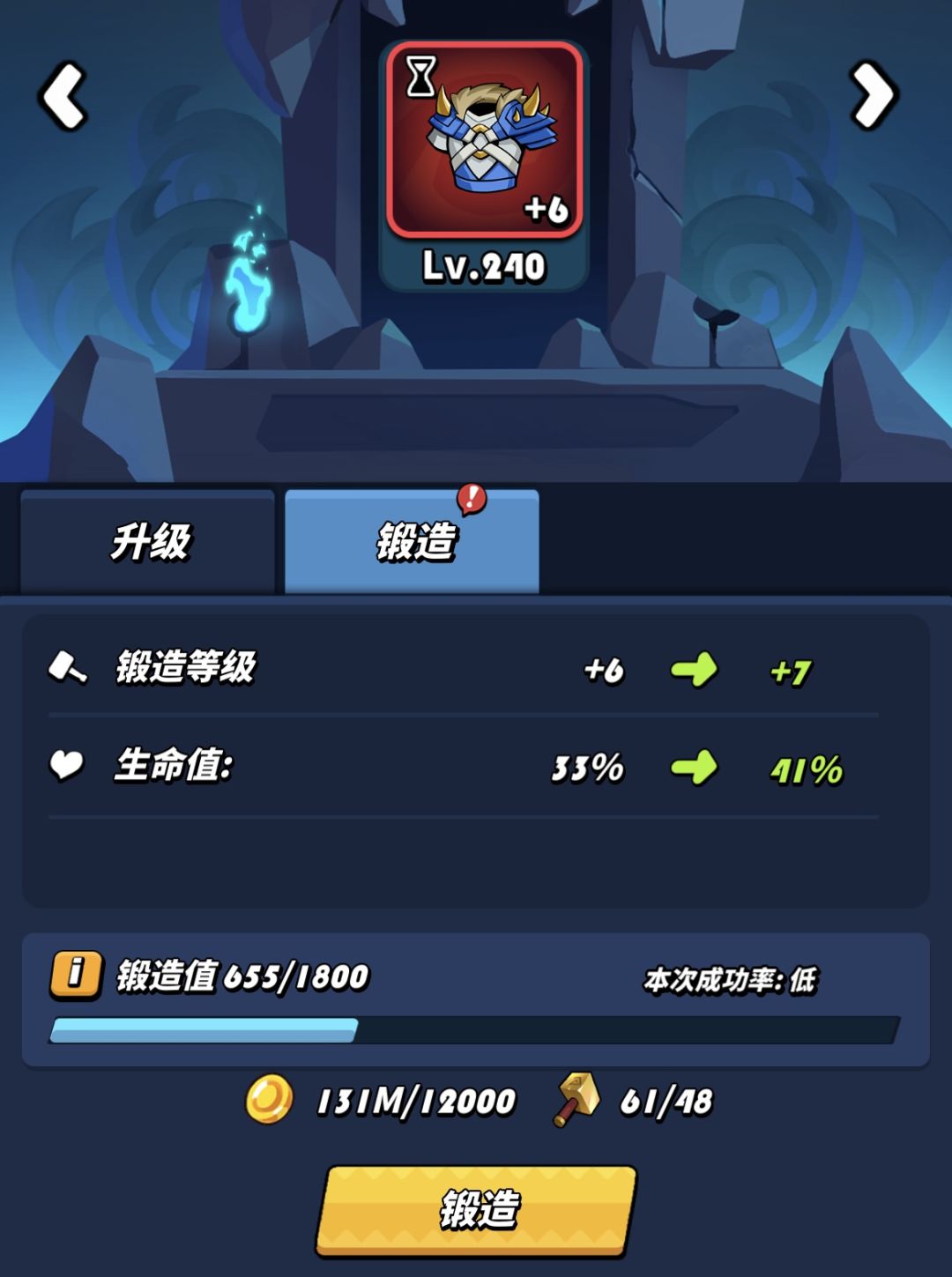 小提示:装备升级是一个缓慢的过程,任何资源都是一步步积累而来的,所以切莫心慌,我们可以慢慢享受变强的过程。