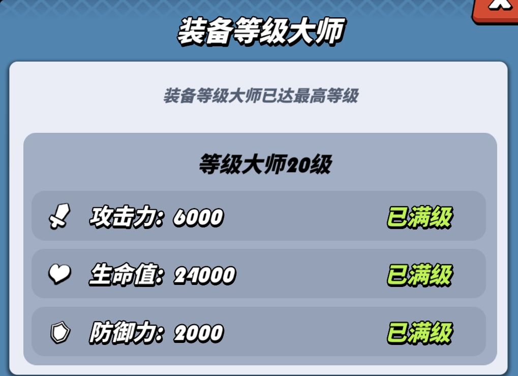 在装备达到特定等级时,会触发装备等级大师效果,增加少量攻击、生命及防御。