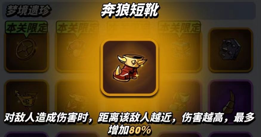 还有一个珍宝也是强烈推荐,那就是奔狼短靴,旋转球的旋转范围本来就不大加上逃流打法,始终在boss上方离boss比较近,可以把奔狼短靴的80%增伤吃满