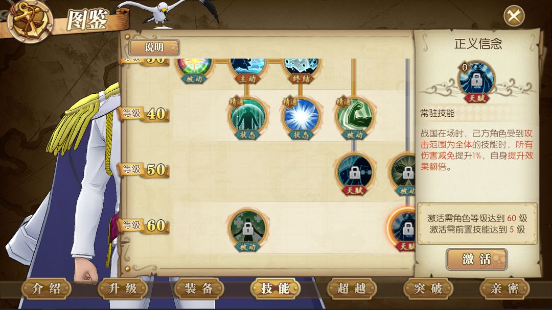 前期可以用SR斯摩格过渡,斯摩格是被大家所小看的海军队前期拼图,可以提供以自身为中心九宫格范围的自然系属性伤害加成和海军全体伤害减免,配合开服福利送的鹰眼,可以弥补队伍前期的伤害不足。如果有比较欧的船长也可以用鲁兹或者白胡子代替鹰眼,不然纯海军队在前期航线模拟战中遇到需要迅速击杀敌人的情况还是比较吃力的。