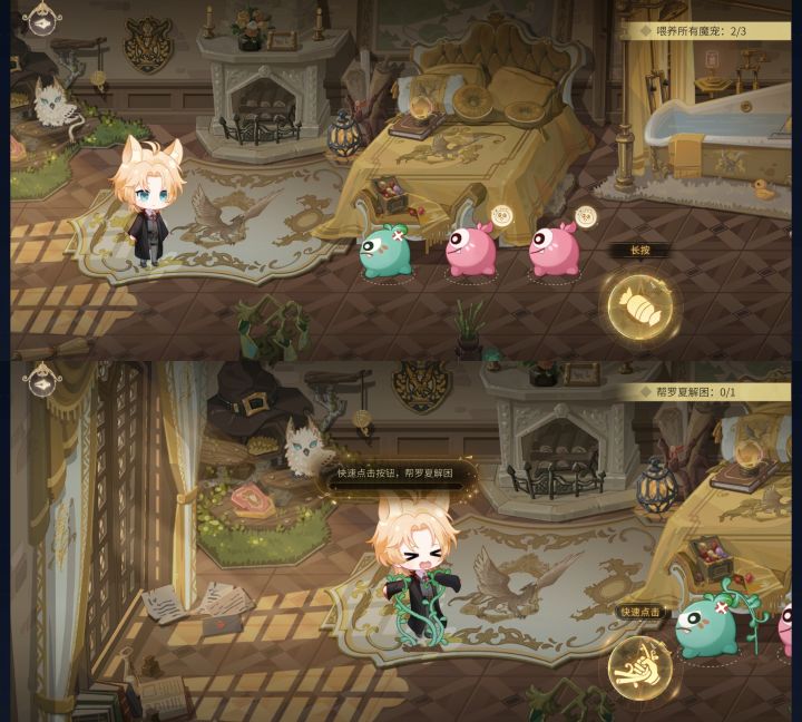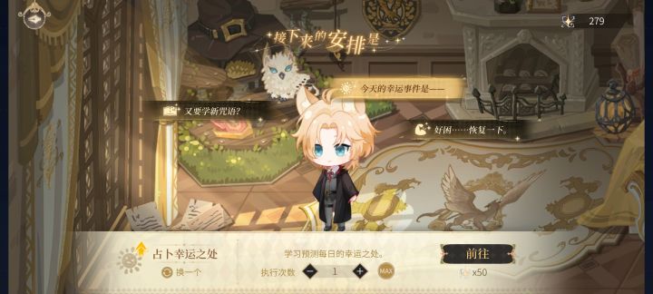 每日金币彩蛋:罗夏和艾因每天都可以分别触发!在这个占卜幸运之处,玻璃球里面显示的家具就是金币彩蛋的地方,但其实不用为了这个彩蛋专门去占卜,只需要在学院徽章、壁炉、床、浴缸这几个地方试就行了