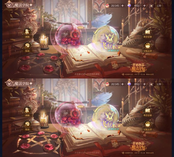 活动页面彩蛋:点两个魔法球会出现不同的效果,艾因的是左下角的魔法阵会亮起来,屏幕还会有红框(p3),罗夏的是羽毛笔会打后面的猫头鹰(p4)