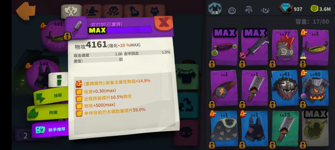 流程就是先像这样搞一套基础,在慢慢升级,打套装,再一件一件替换成双重铸好属性的,可以肉眼可见的变强,最后蓝剑带个杀敌+速度的精华,重铸三鞋三头,最后真心说一句,我只说低配蓝剑能玩,但是真的不推荐,搞一套低配万用的波动遗产才是最适合新人的,我之所以写这个配装是有个老哥就想怼蓝剑,我才写的,就我这身垃圾无幽灵,可以砍双S,离三S差一般,提个等级打个套,可以轻松三S