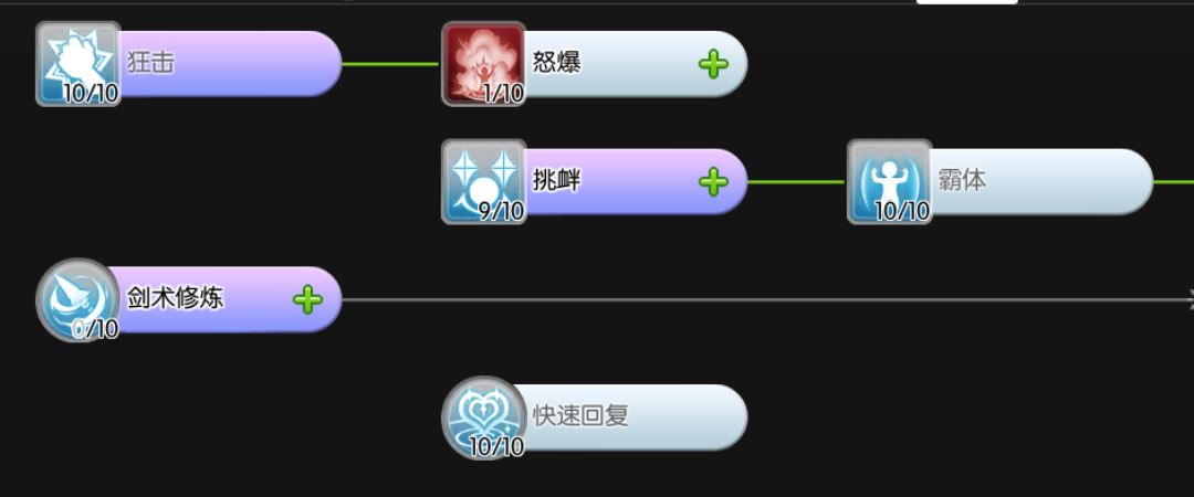 挑衅9、狂击10、霸体10、怒爆1、快速回复10
